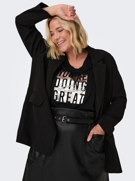 Der er mange måder, du kan style din t-shirt plus size på for at skabe forskellige looks. Til en casual dag, par den med et par jeans eller leggings og et par sneakers. For et mere pyntet look kan du kombinere t-shirten med en lang nederdel og højhælede sko. Du kan også tilføje accessories som en statement-halskæde eller øreringe for at give dit outfit lidt ekstra flair. Mulighederne er næsten uendelige, så du kan være kreativ og skabe looks, der passer til dig og din personlige stil. Se også vores plus size bluser for flere stylingmuligheder.