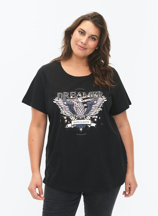 Leder du efter en dame t-shirt store størrelser? Vores kollektion indeholder t-shirts til alle tænkelige anledninger. Fra formelle begivenheder til en almindelig hverdag, vi har noget der passer perfekt. De mange designs gør det nemt at finde en t-shirt, der kan styles på forskellige måder, så du altid føler dig godt klædt på. De forskellige materialer og snit sikrer, at du altid kan finde noget, der passer til netop din kropsform og stil. Mange af vores t-shirts kan nemt mikses og matches med andre elementer af din garderobe, såsom vores nederdele i plus size, hvis du ønsker at skabe et mere sammensat look.
