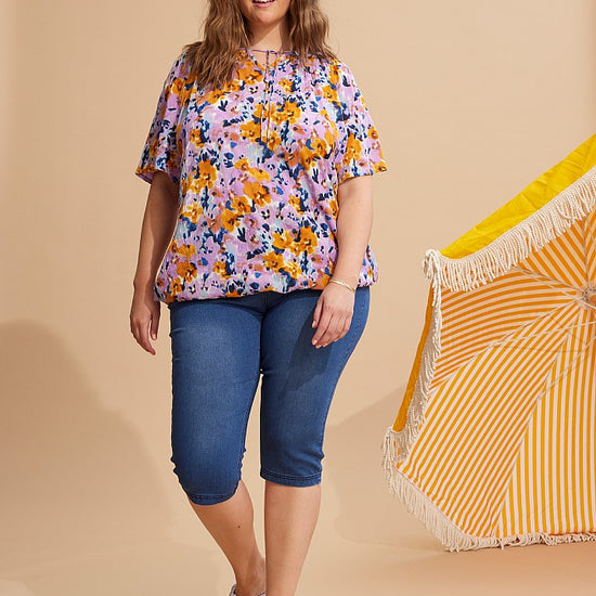 Zhenzi capri bukser, fremstillet i en lækker kombination af 70% bomuld, 27% polyester, 1% viskose og 2% elastan. Disse bukser er designet til at give en behagelig pasform og har indvendig elastik som kan justeres.