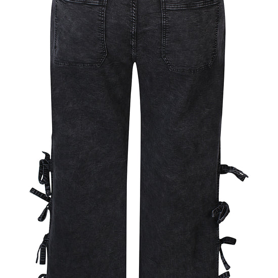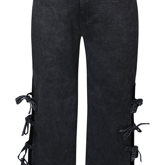 Jeansene har en klassisk fem-lomme konstruktion, der giver både funktionalitet og stil. Snøredekorationerne langs benene tilføjer et trendy og feminint touch, der adskiller dem fra traditionelle jeans. Disse detaljer gør dem til et must-have i garderoben.