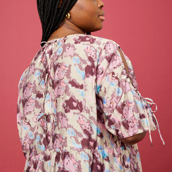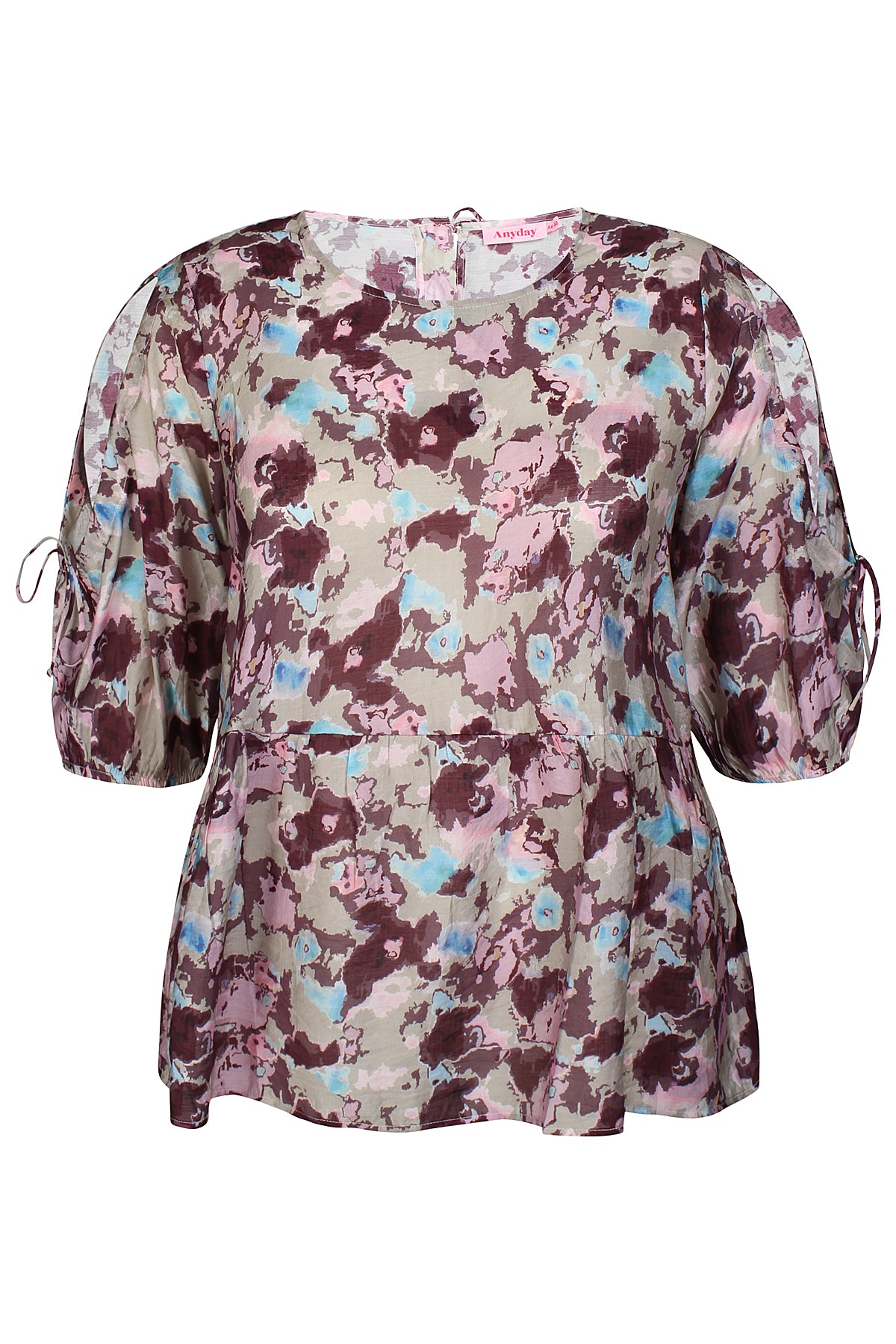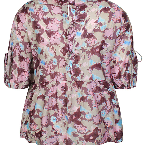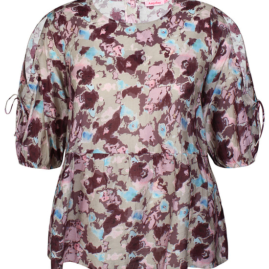 Denne bluse fra ANYDAY er designet i et let og behageligt materiale med 70% viskose og 30% polyester. Det abstrakte blomsterprint i lilla, lyserød, blå og beige giver blusen et eksklusivt og moderne udtryk. De løse ærmer med bindebånd og de dekorative snører på ryggen giver et feminint og personligt touch.