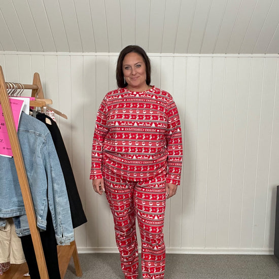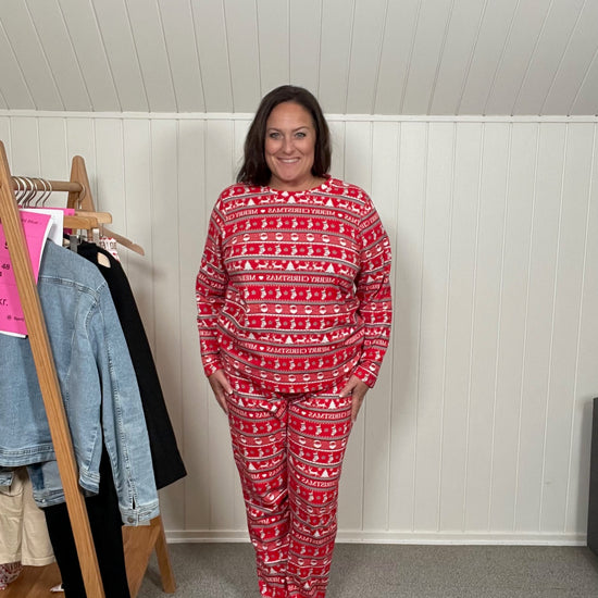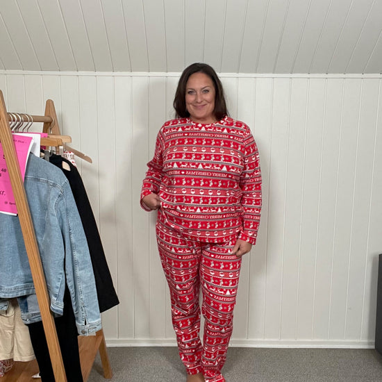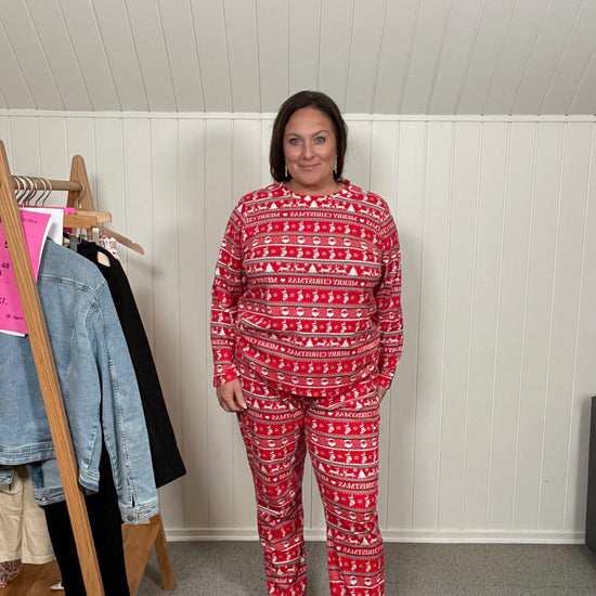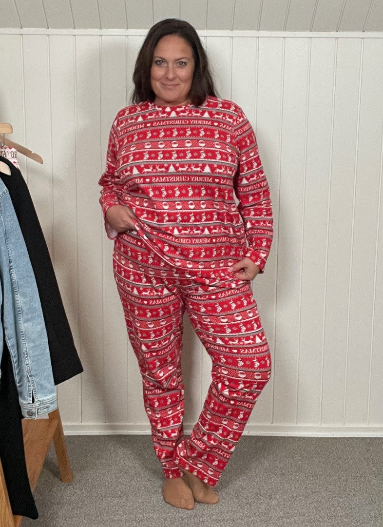Det charmerende print med snemænd, rensdyr og "Merry Christmas" bringer ekstra glæde til enhver vinteraften. Sættet er perfekt til afslappende stunder, men kan også styles med en plus size nederdel eller et par plus size jeans for et personligt og hyggeligt look. Gør dine juledage ekstra komfortable med dette dejlige julesæt!