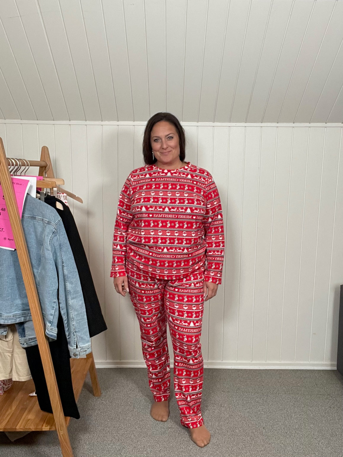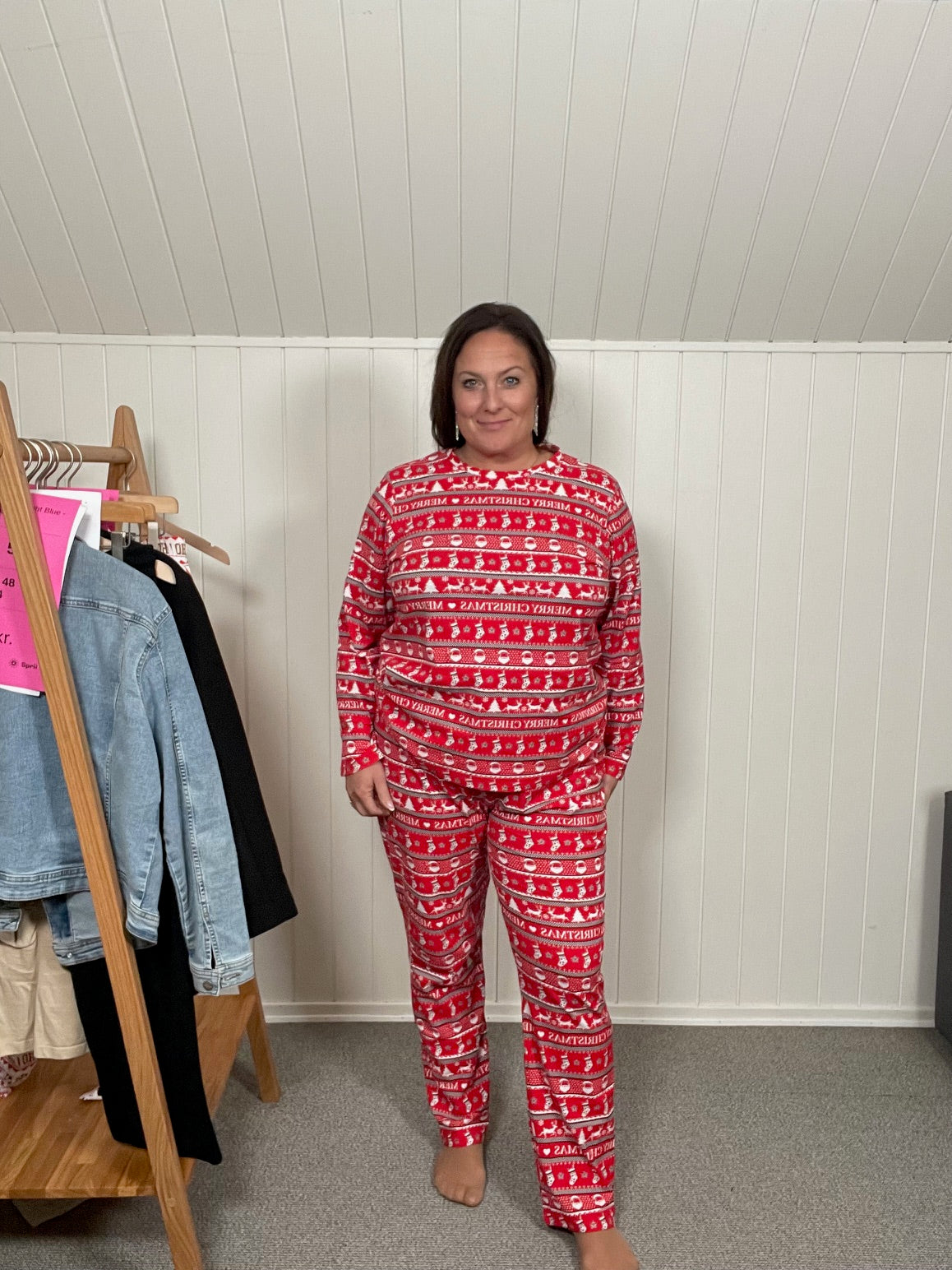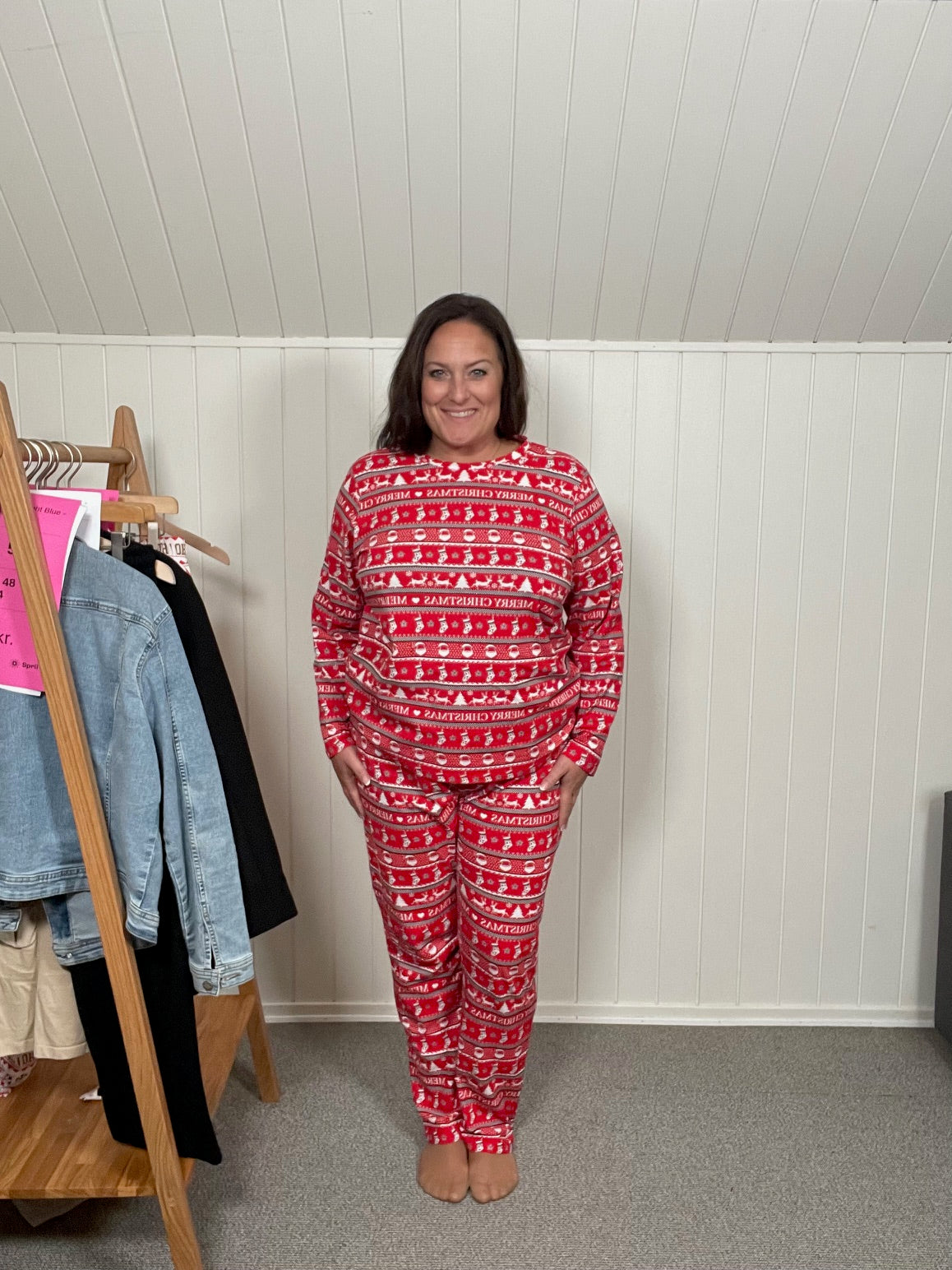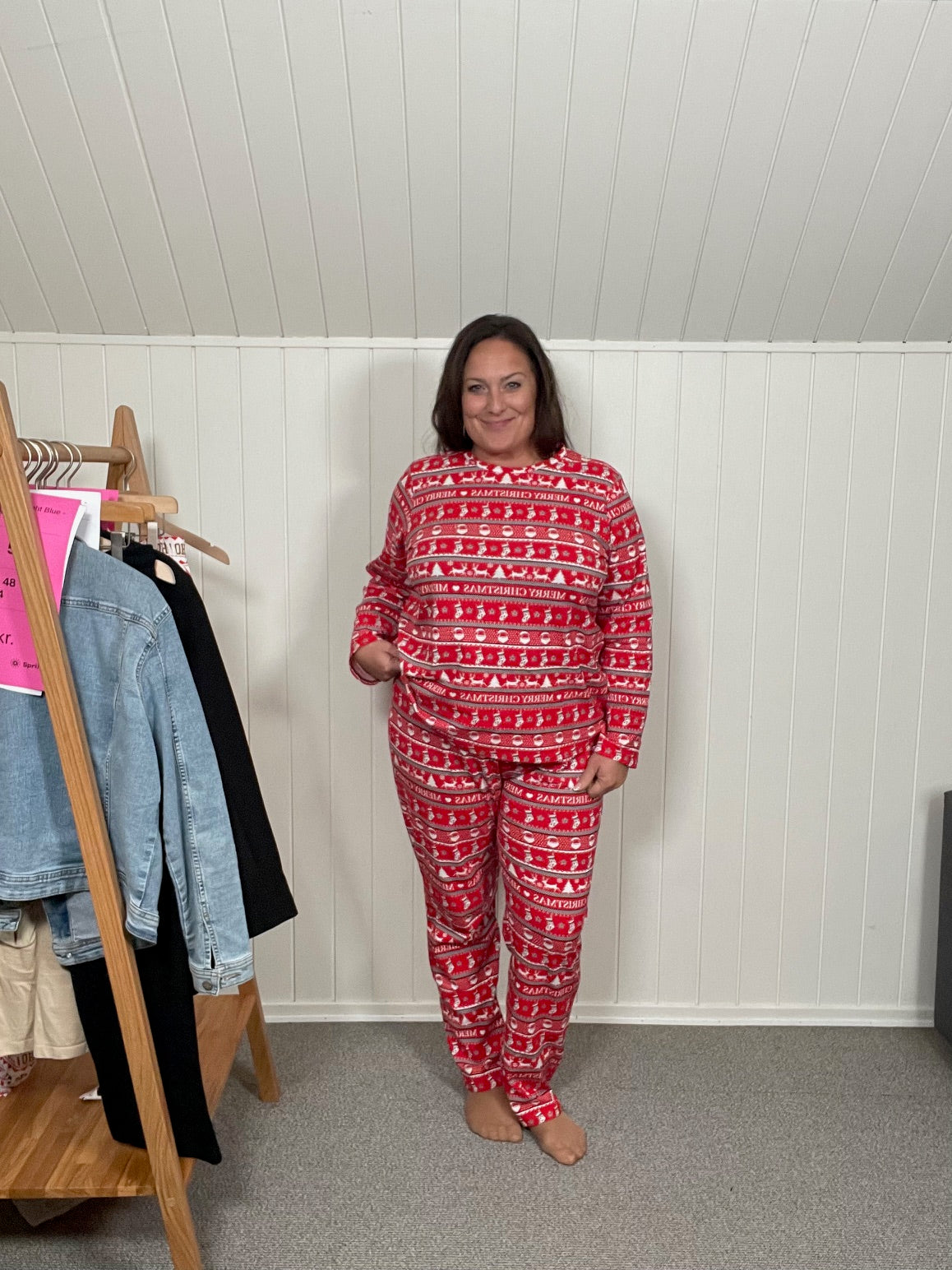 - Sæt: Langærmet bluse og lange bukser i matchende juleprint