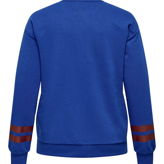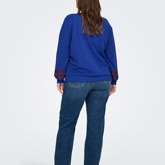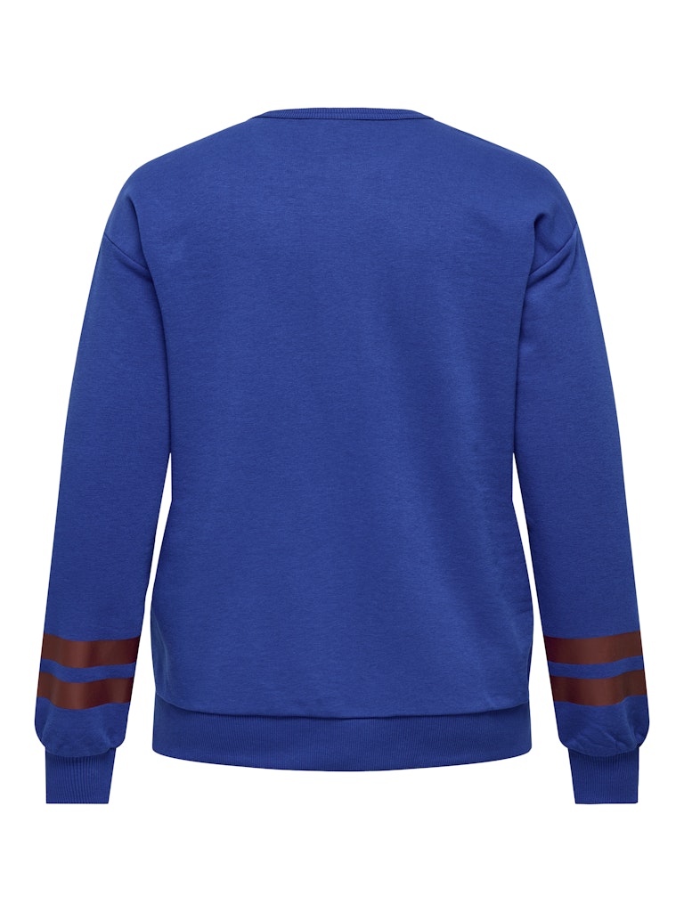 De dekorative rhinesten og ribkanter giver et feminint og sporty twist, så du nemt kan style denne pullover til både plus size jeans og afslappede looks. Kombiner den også gerne med en af sæsonens smarte plus size jakker for et fuldendt outfit. Pulloveren er perfekt til dig, der ønsker både stil og komfort i hverdagen.