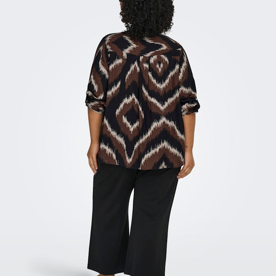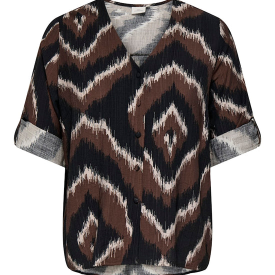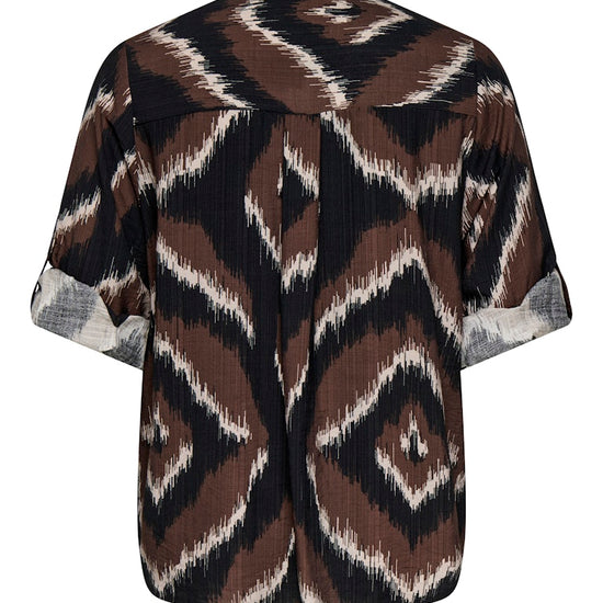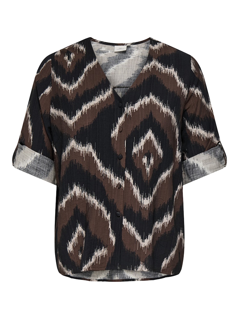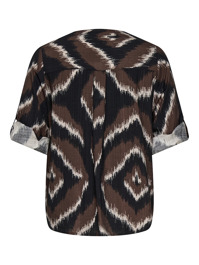 Opgrader din garderobe med denne elegante skjorte i shaved chocolate – en dyb, mørk rødbrun nuance. Skjorten er lavet i en blød og åndbar kvalitet med 83% LENZING™ ECOVERO™ viskose og 17% polyamid, som sikrer komfort hele dagen. Det flotte zigzag-print og ærmer kan foldes op, giver blusen et mere afslappet look.