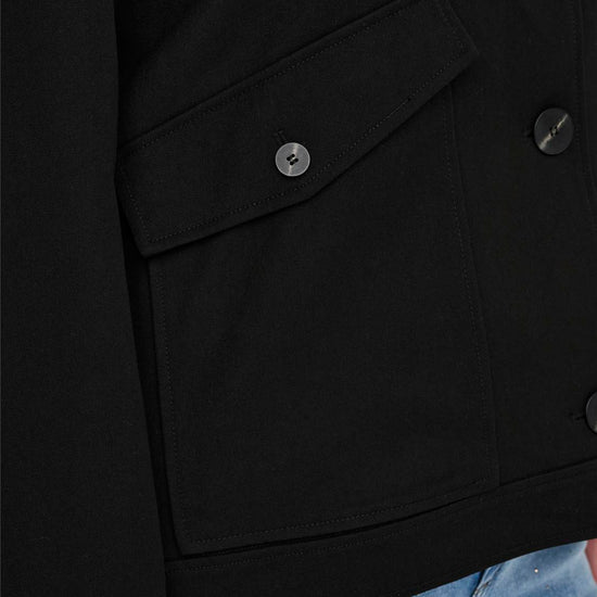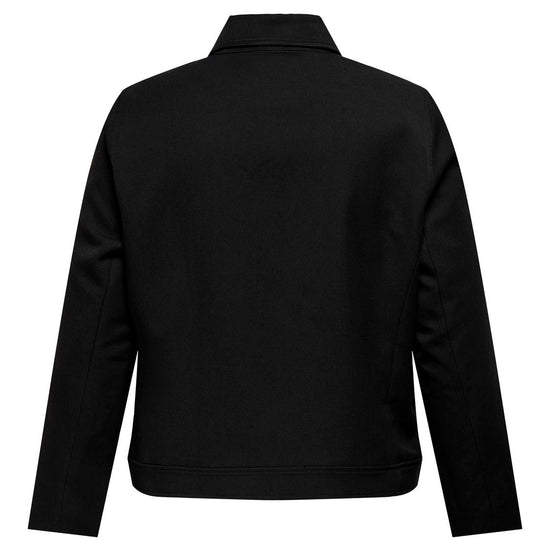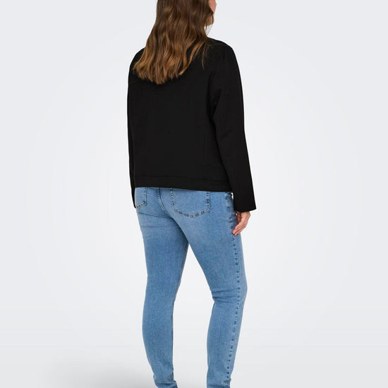 Den sorte farve gør denne jakke til en tidløs klassiker, der kan kombineres med næsten alt i din garderobe. Med dens korte længde og spredte krave tilføjer den et moderne touch til dit outfit. Perfekt til både hverdagsbrug og mere formelle anledninger, vil denne jakke hurtigt blive en favorit i din garderobe. Kombiner den med plus size jeans eller en plus size kjole for et komplet look.