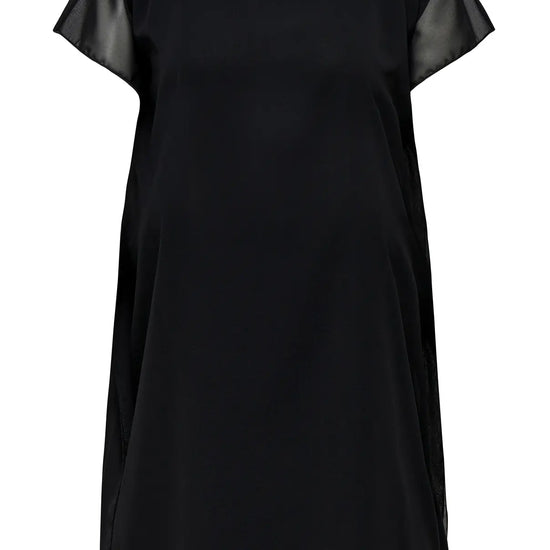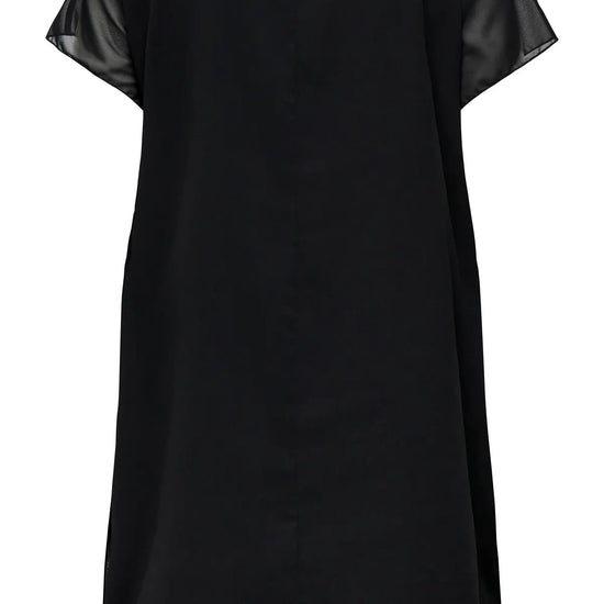 Denne korte kjole har en rund hals og korte ærmer, der giver et klassisk og behageligt look. Den er fremstillet i 100% polyester, hvilket sikrer let og luftigt materiale, der passer godt til efterårssæsonen. Kjolen er lavet med to lag stof, hvor det yderste lag er chiffon.