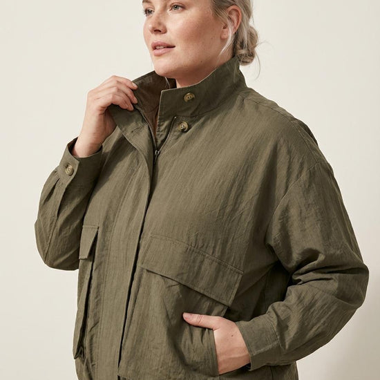 Denne jakke fra Only Carmakoma er et oplagt valg, når du søger et moderne og funktionelt stykke tøj til de skiftende årstider. Designet er præget af et råt utility-look med store, markante lommer foran og en flot farve, der passer til langt det meste i garderoben. Jakken har en høj krave, der kan lukkes til med en knap foroven, samt en skjult lynlåslukning dækket af en stolpe for et rent udtryk. De lange ærmer afsluttes med manchetter og knap, hvilket tilfører jakken en klassisk finish.