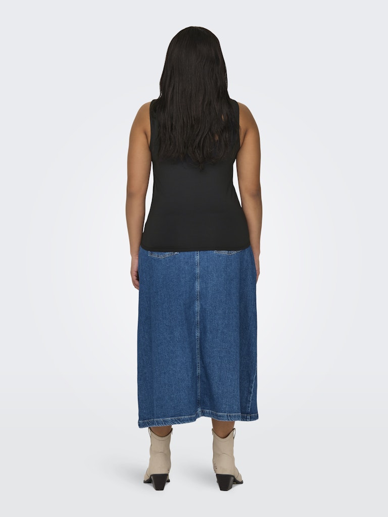 Oplev den uundværlige sort top fra ONLY CARMAKOMA, skabt til at fremhæve de smukke kurver i en feminin silhuet. Denne top er designet til at passe perfekt til kvindekroppe i størrelserne 42-54, med et regular fit der sikrer komfort hele dagen. Toppen er vendbar, så du selv bestemmer om du ønsker udskæringen foran eller bagpå.