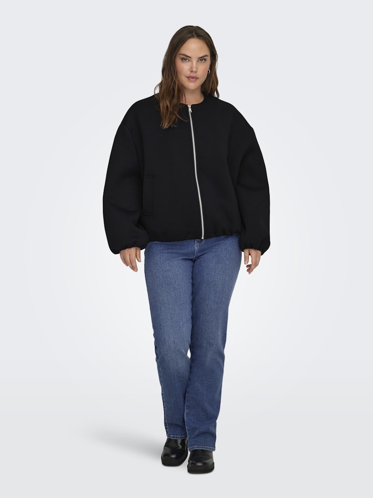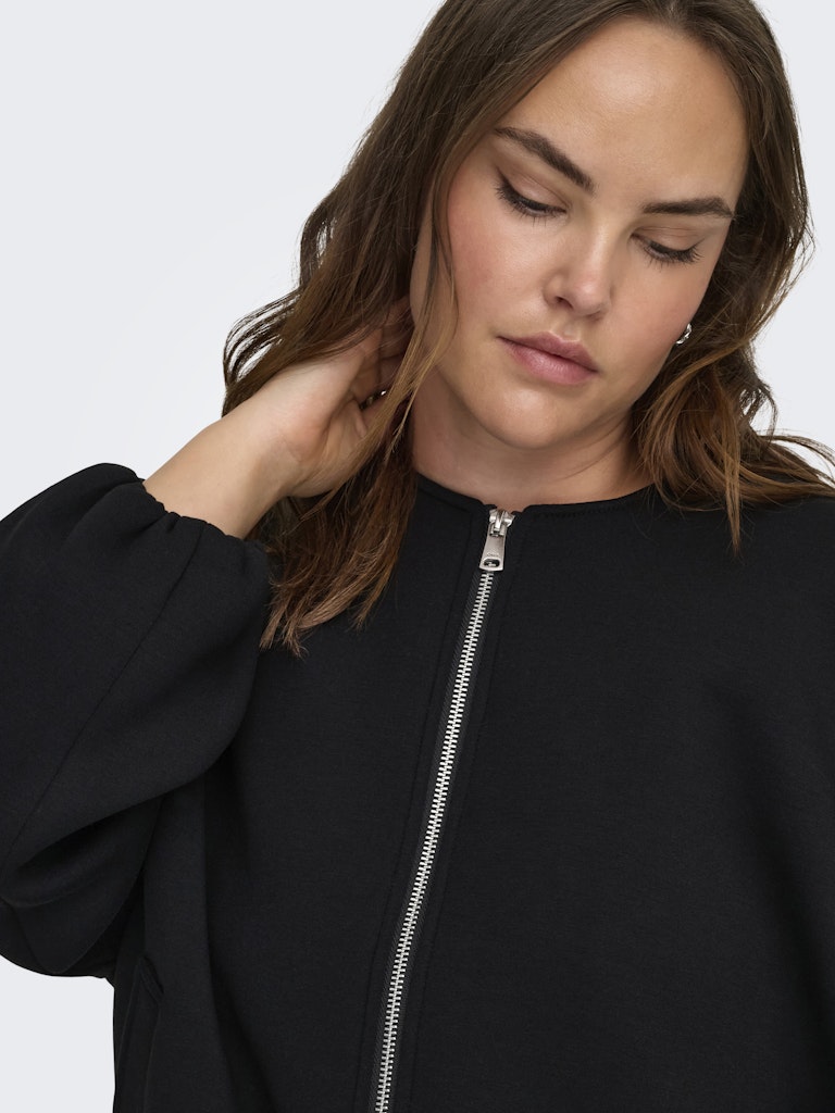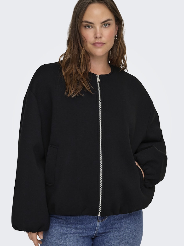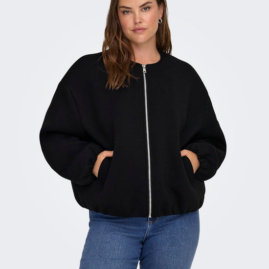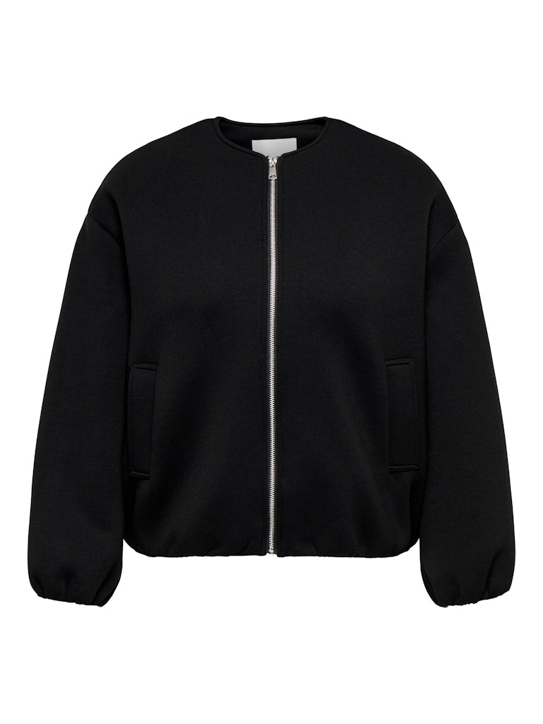 Denne elegante jakke fra Only Carmakoma kombinerer et klassisk snit med moderne detaljer, der gør den til en sikker vinder i garderoben. Jakken har en enkel rund halsudskæring og en markant sølvfarvet lynlås, der skaber et flot blikfang mod det dybe sorte stof.