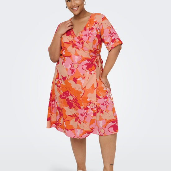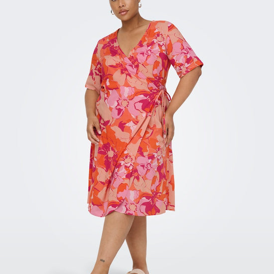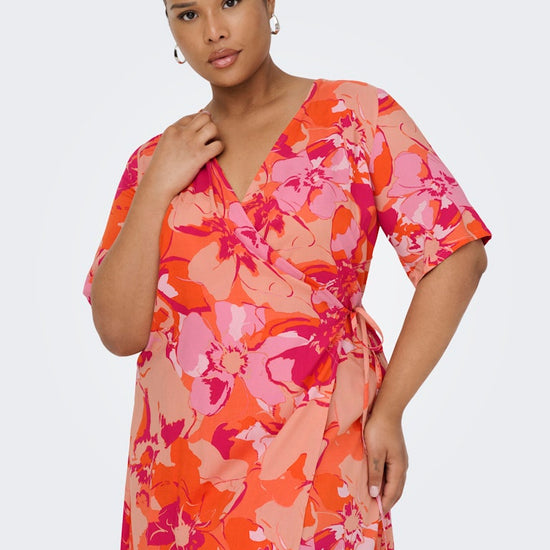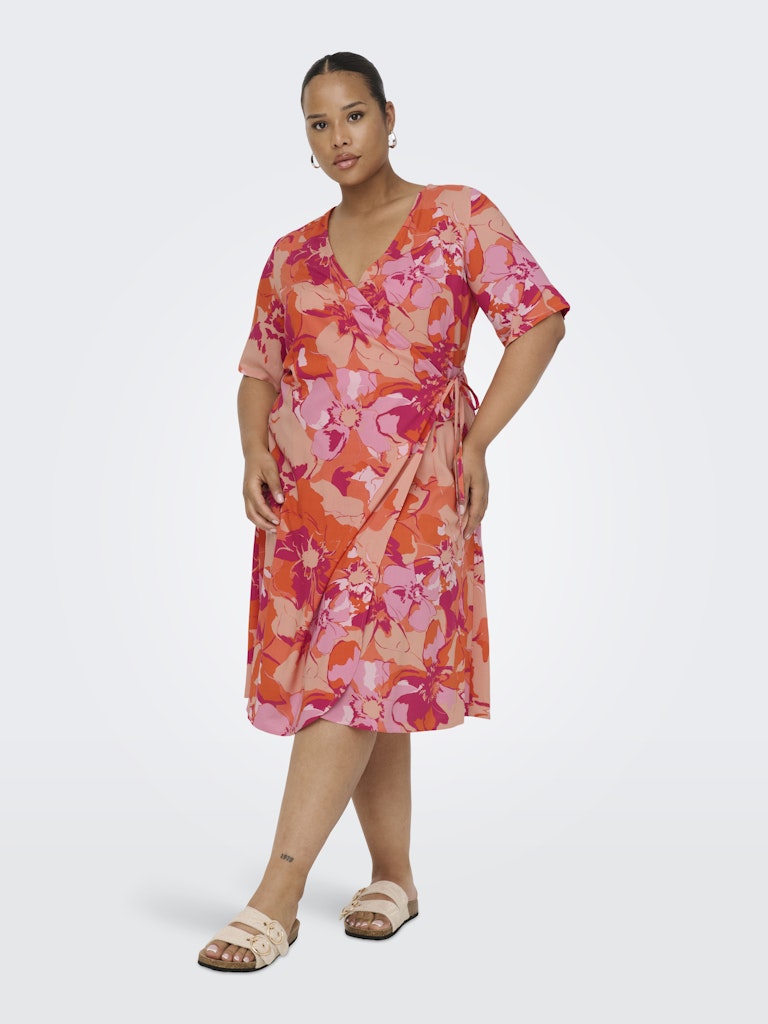 Farverig slå-om kjole fra ONLY CARMAKOMA
