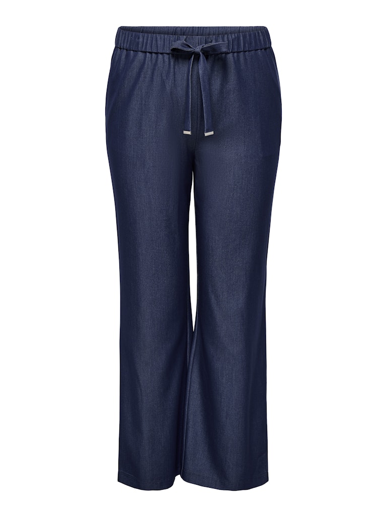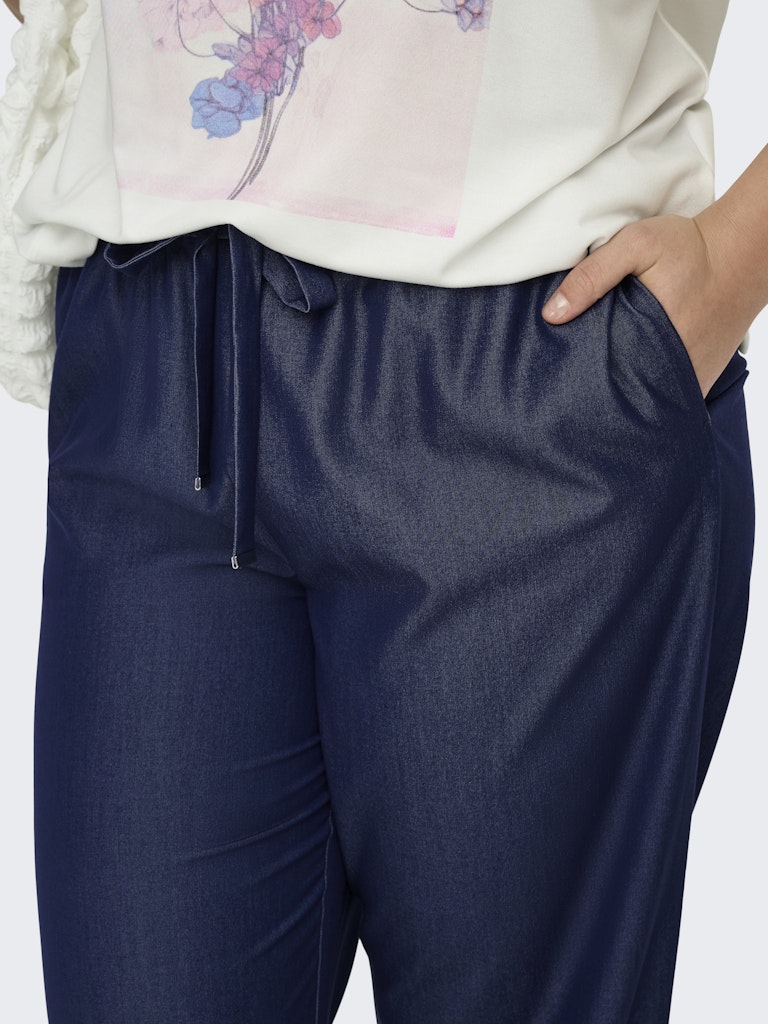 Disse elegante bukser fra Only Carmakoma forener et stilrent udtryk med en utrolig behagelig pasform. De er designet i en dyb mørkeblå farve med en smuk melange-effekt, der giver stoffet et eksklusivt look, som minder om pæne habitbukser. Med det populære 'wide leg fit' får du masser af vidde i benene, hvilket skaber en flot silhuet og sikrer, at bukserne falder pænt. Det er et oplagt valg, hvis du søger nye Only Carmakoma bukser til samlingen.