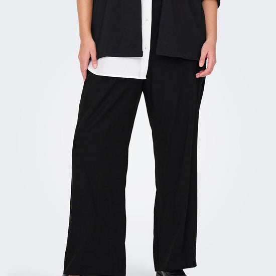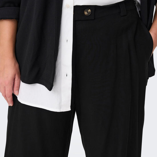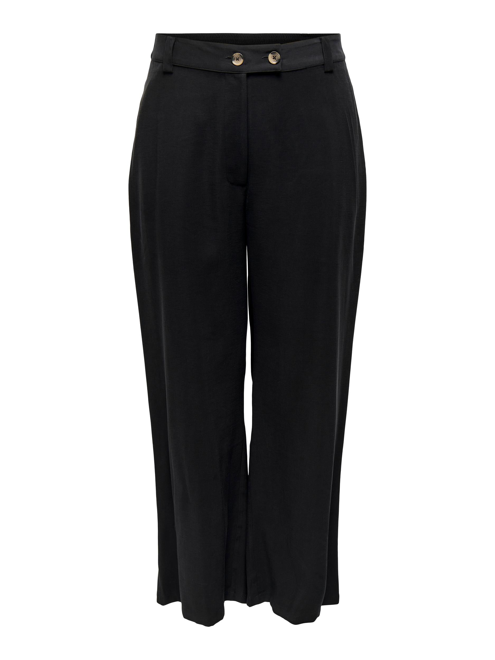 ONLY CARMAKOMA's Wide leg trousers er en regulær pasform model, fremstillet af 100% viskose. Vidde i ben og et rent, stilfuldt design og kommer i farven sort.