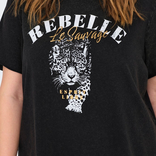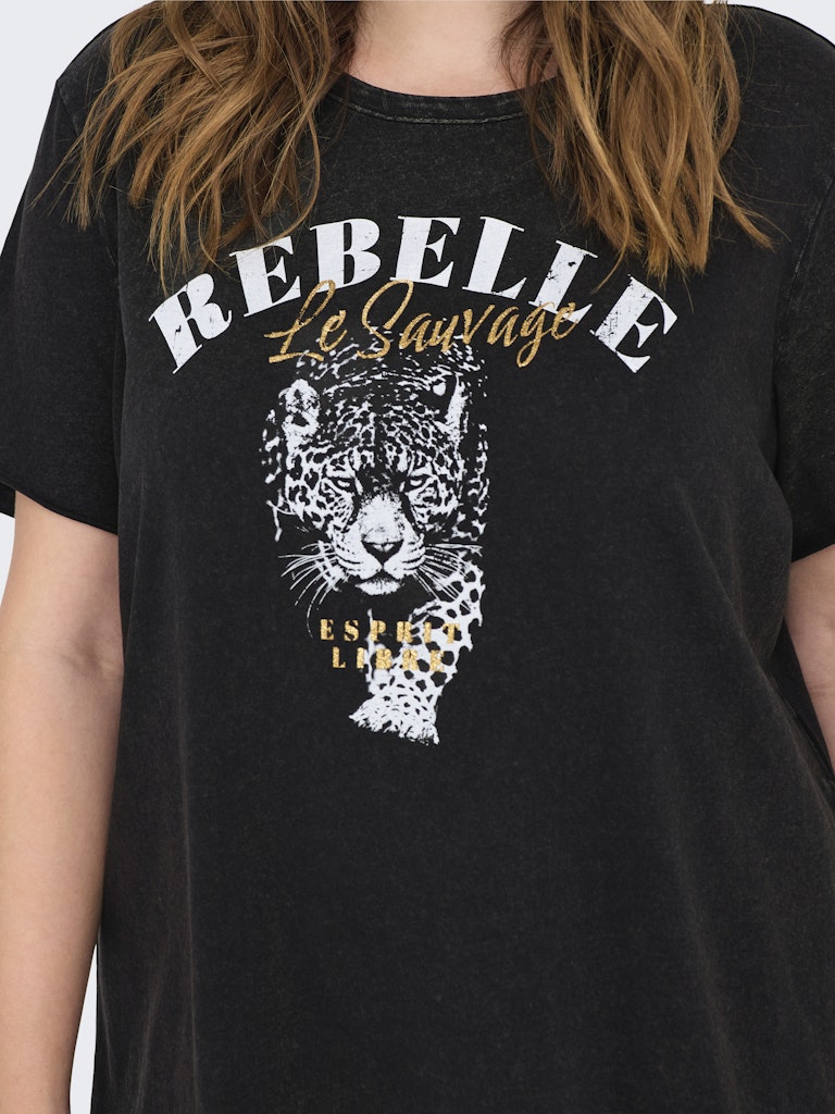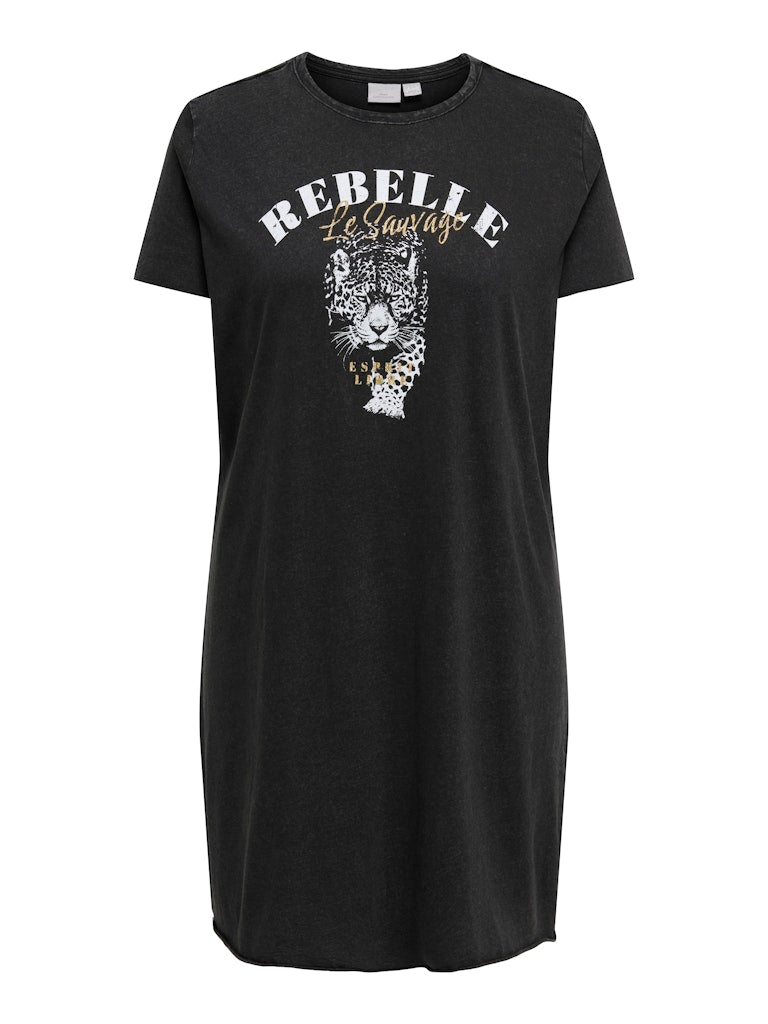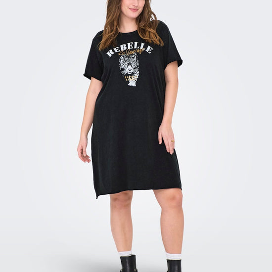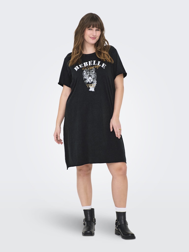 ONLY CARMAKOMA casual kjole, designet som en lang T-shirt med flotte prints . Enkel og smart, over et par jenans eller som den er