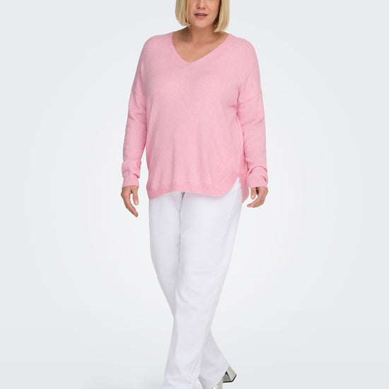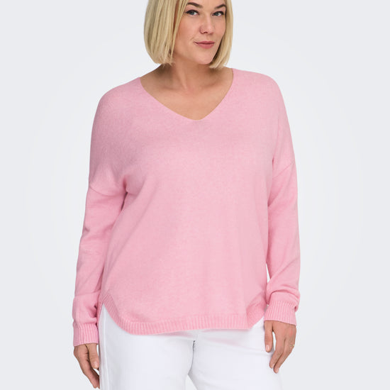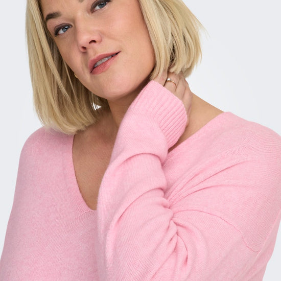 Denne skønne pullover fra Only Carmakoma er den perfekte kombination af stil og hygge til din garderobe. Den flotte rosa nuance har et let melange-look, der giver dybde til farven, mens den bløde kvalitet sikrer, at denne strik er utrolig behagelig at have på. Designet byder på en klassisk V-udskæring, lave skuldersømme for et afslappet udtryk samt brede ribkanter ved ærmerne, der fuldender det moderne look.