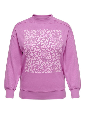 Blusen har et unikt grafisk print på forsiden, der består af et leopardmønster i tone-i-tone kontrast samt rosemotiver. Designet er suppleret af ordet "FEARLESS" i store bogstaver, hvilket giver et dristigt og selvsikkert udtryk. Pasformen er afslappet med en rund halsudskæring og lange ærmer, der afsluttes med ribstrikkede manchetter for en god pasform.