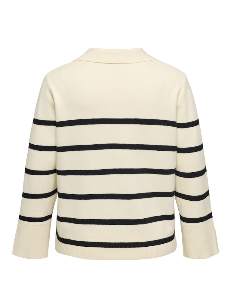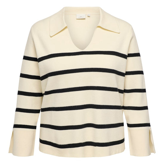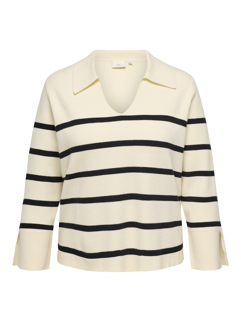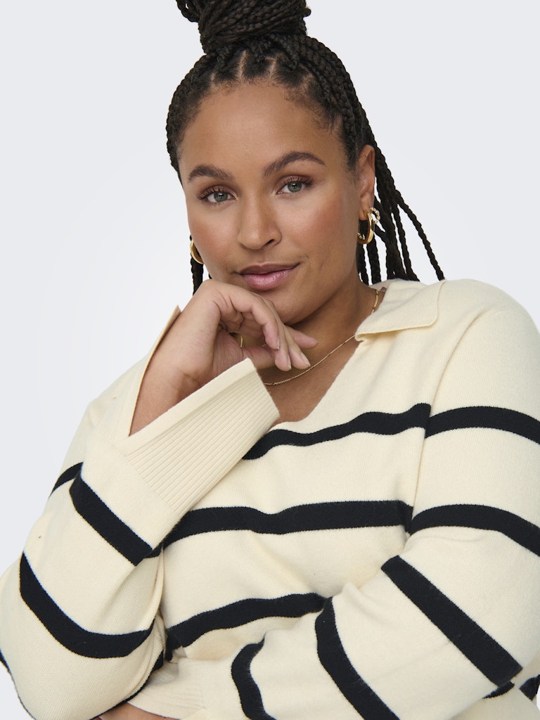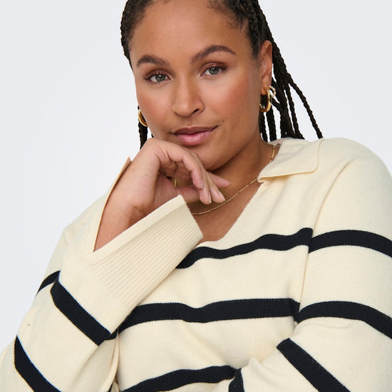 Den elegante birch med sorte striber farvekombination gør denne pullover til et alsidigt valg, der kan matches med både jeans og nederdele. Tilgængelig i størrelserne S (42/44), M (46/48) og L (50/52), sikrer den en perfekt pasform for enhver kurvet kvinde. Gå ikke glip af chancen for at tilføje denne tidløse klassiker til din garderobe.