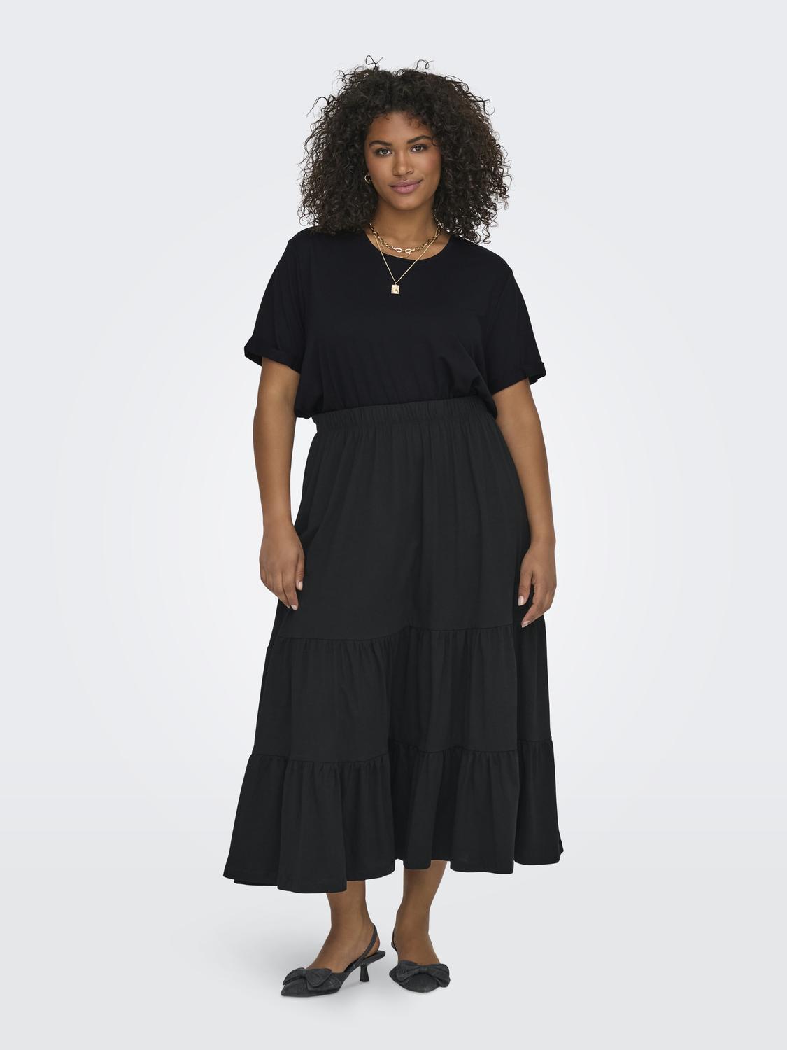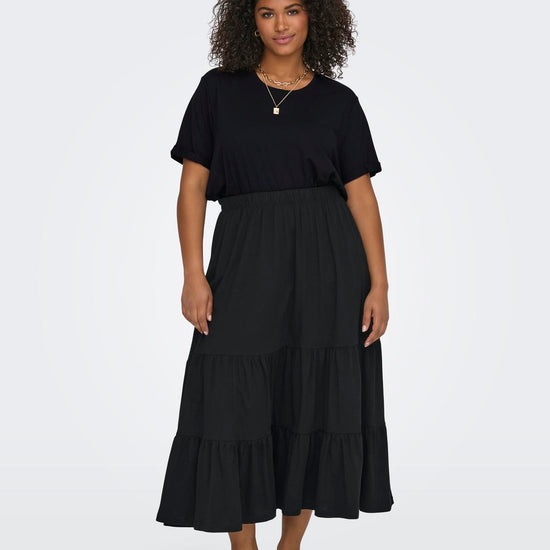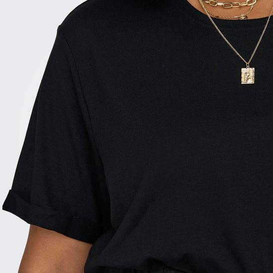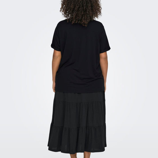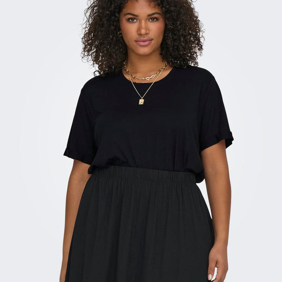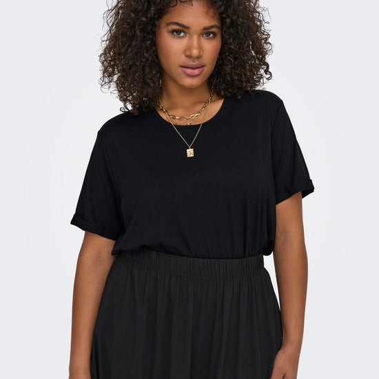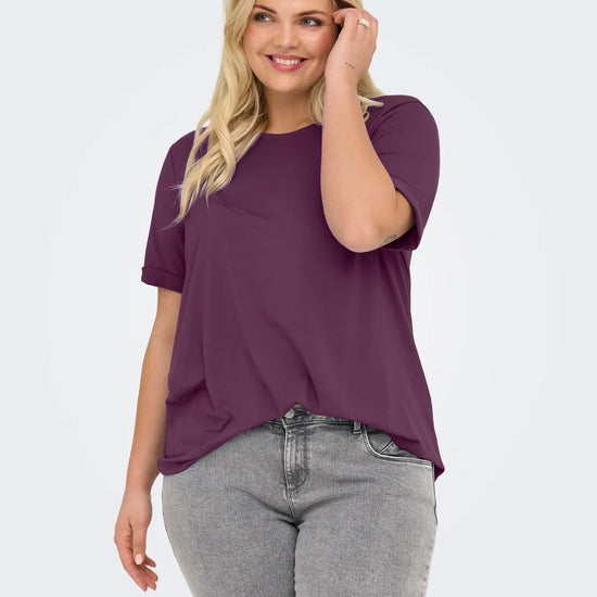 Oplev ultimativ komfort med denne bløde og strækbare T-shirt fra ONLY CARMAKOMA. Den er perfekt til både hverdagsbrug og afslappede anledninger. Designet med en lille opsmøg på ærmerne giver T-shirten et moderne og stilfuldt twist, der adskiller sig fra den klassiske model.