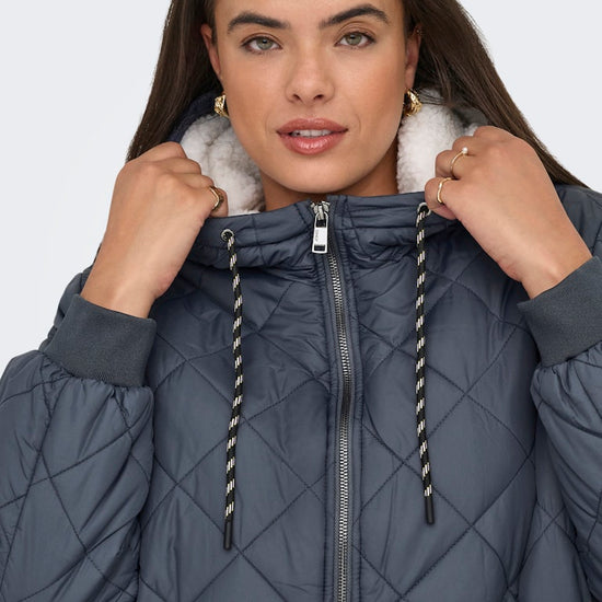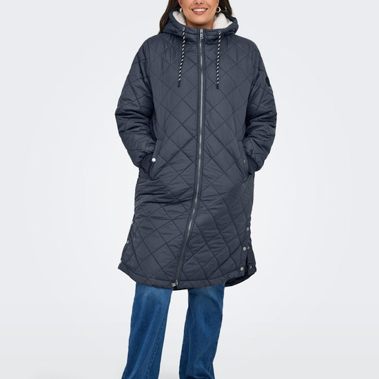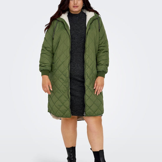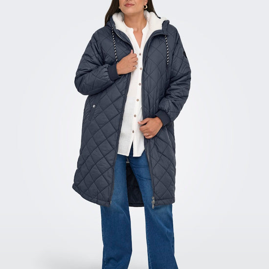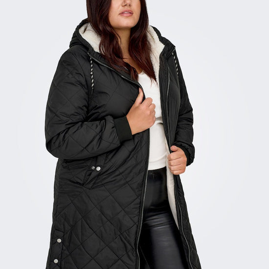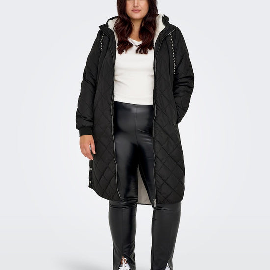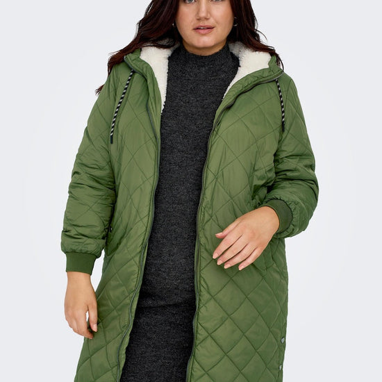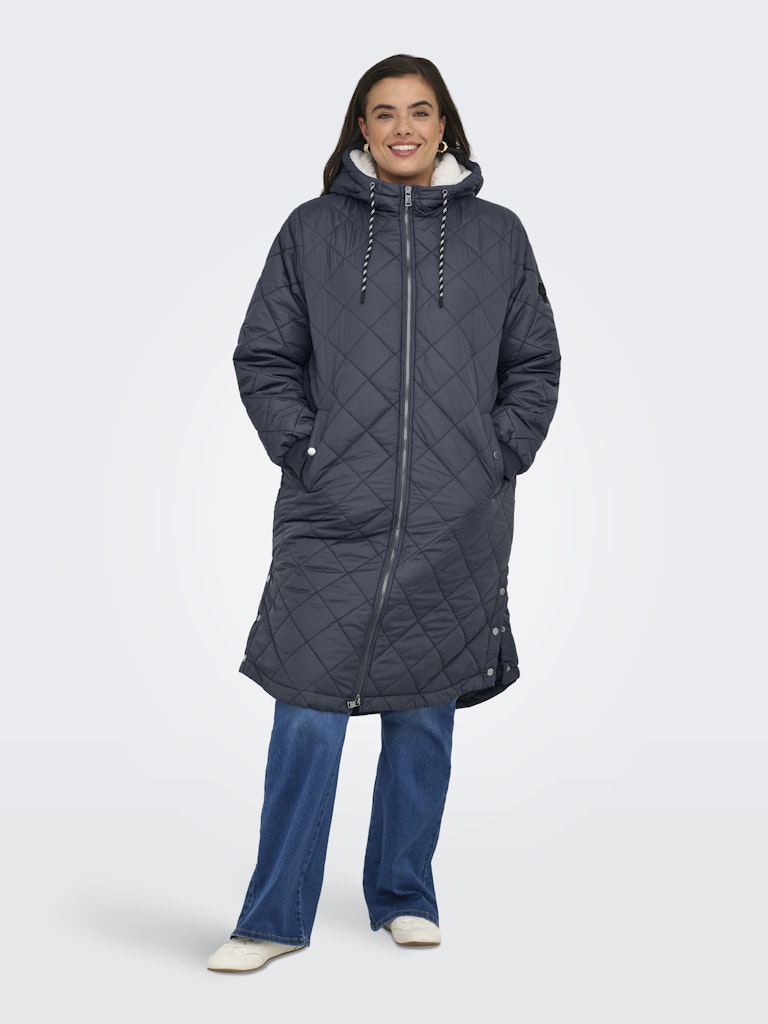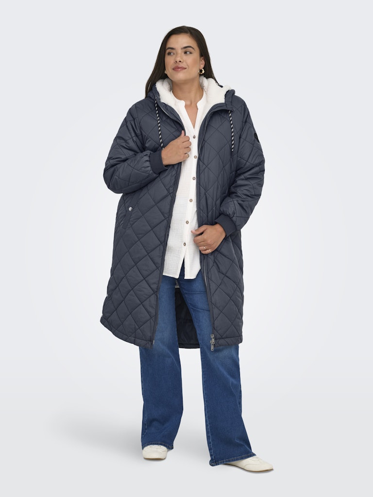 Quiltet jakke fra Carmakoma med lynlås, lommer og hætte med snører.