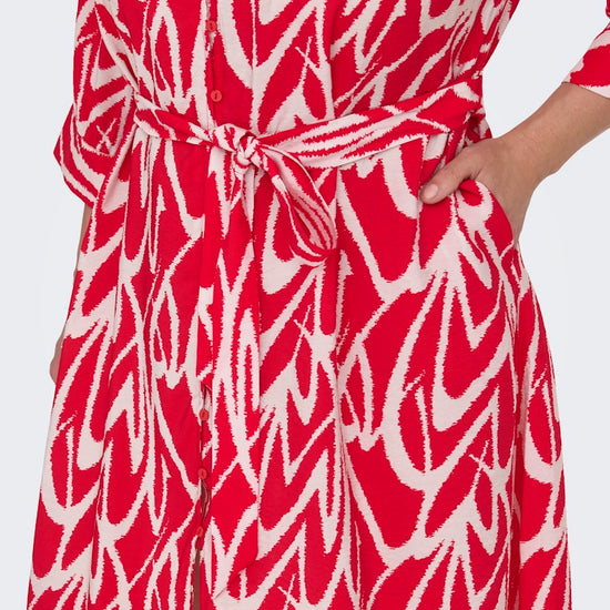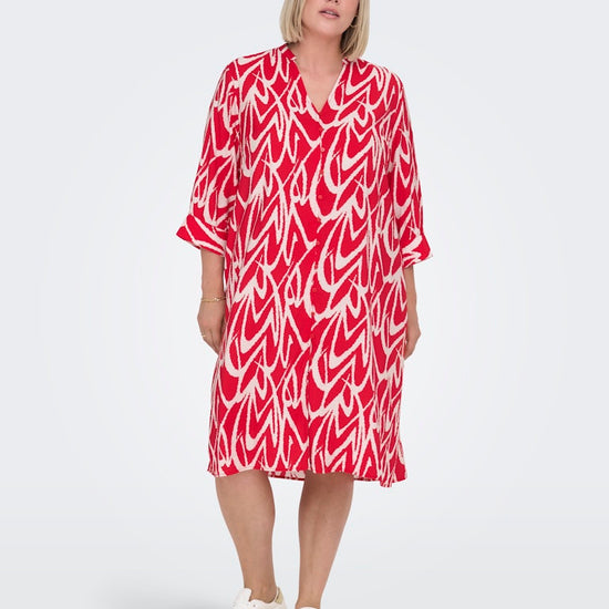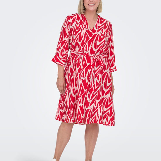Den iøjnefaldende "High Risk Red HEART TOWN" farve gør denne kjole til et blikfang i enhver garderobe. Med størrelser fra 42 til 54, passer denne kjole til mange forskellige kropsformer. ONLY CARMAKOMA's internationale modebrand har skabt denne stil til at fremhæve de smukke kurver, hvilket gør den til et must-have i din samling af kjoler til enhver festlig anledning.