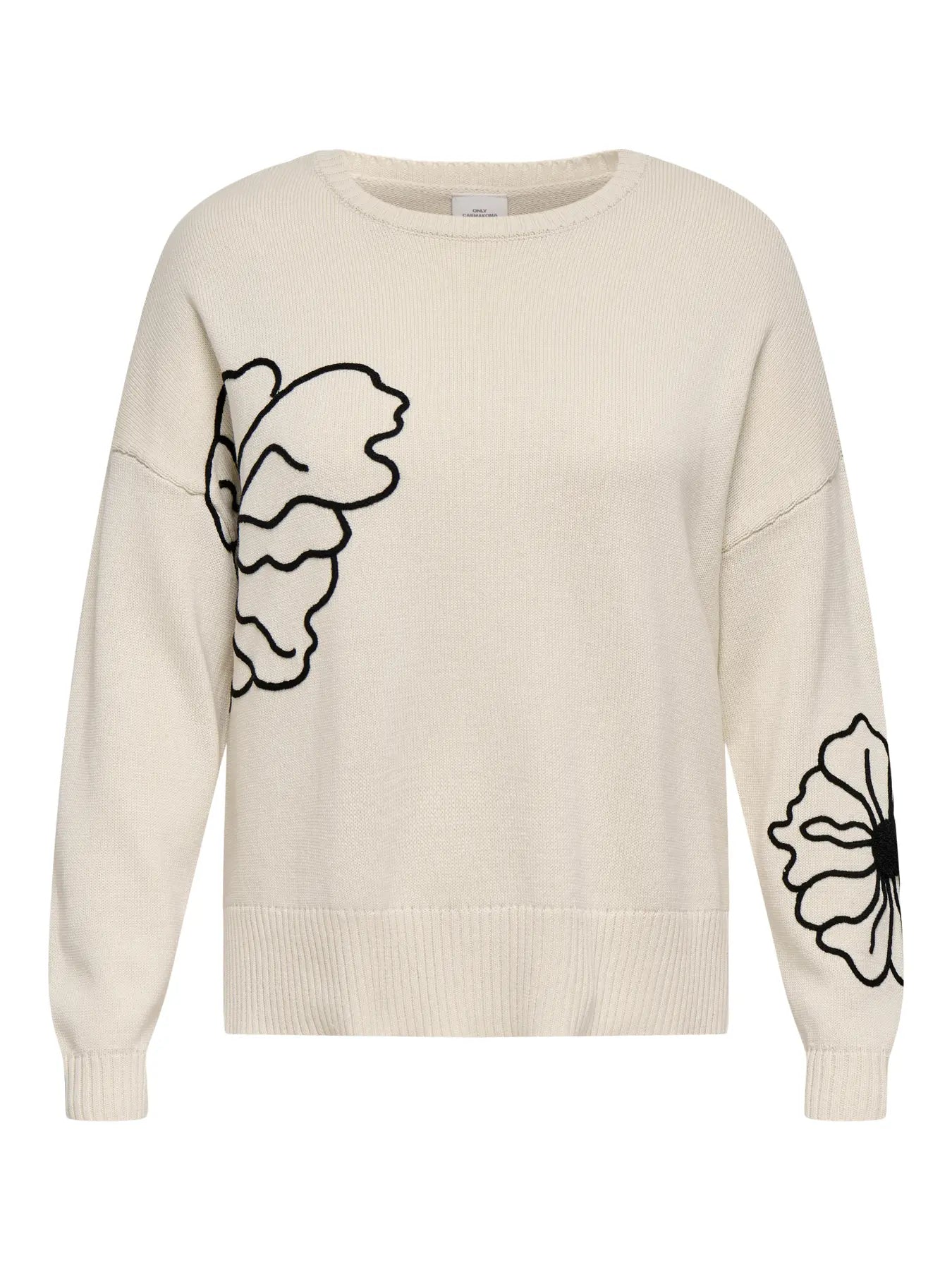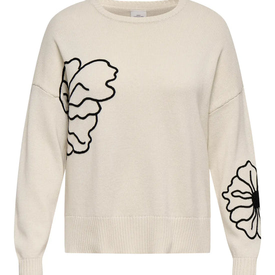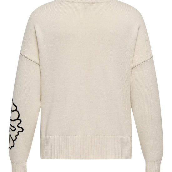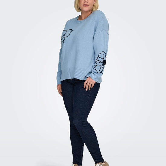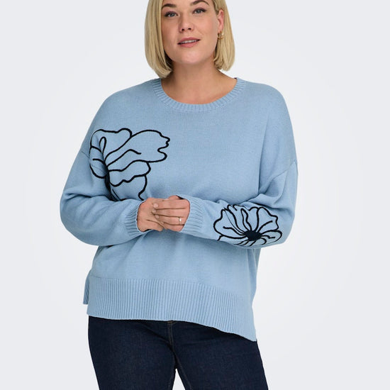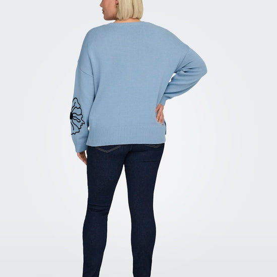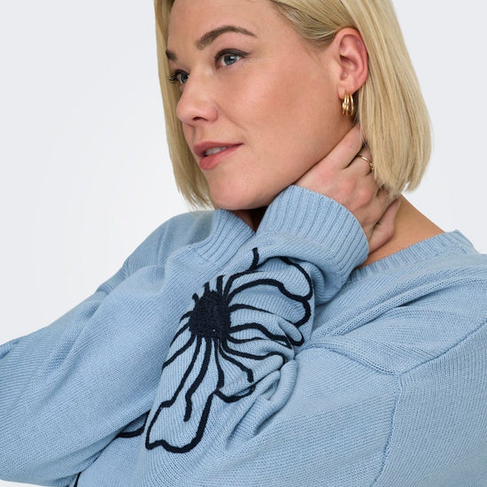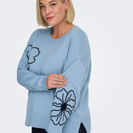 CarPetra - Strikbluse med Broderet Blomst
