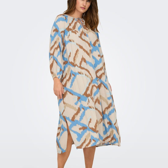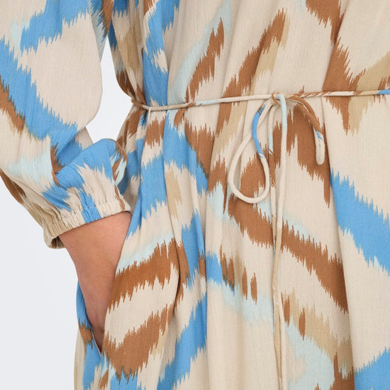 Med sit smukke mønster og behagelige pasform er denne kjole en uundværlig del af enhver garderobe. Dens justerbare talje og plisserede detaljer tilføjer et stilfuldt touch, der gør den velegnet til både hverdagsbrug og festlige begivenheder. Uanset om du kombinerer den med et par sandaler eller stiletter, vil denne kjole helt sikkert få dig til at føle dig fantastisk hele dagen. Udforsk flere fantastiske kjoler i vores kjolekollektion.
