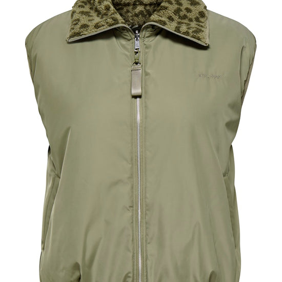 Denne vendbare vest er ideel til den moderne kvinde, der ønsker både stil og funktionalitet. Den høje hals og lange ærmer giver ekstra varme, mens lynlåsen sikrer en nem lukning. Vesten kan vendes og bruges på begge sider, hvilket giver flere muligheder for at variere dit look. Materialet er 100% genanvendt polyester, der kombinerer bæredygtighed med komfort og holdbarhed. De praktiske sidelommer tilføjer funktionalitet, og det unikke Leo-detalje mønster giver vesten et karakteristisk udtryk.