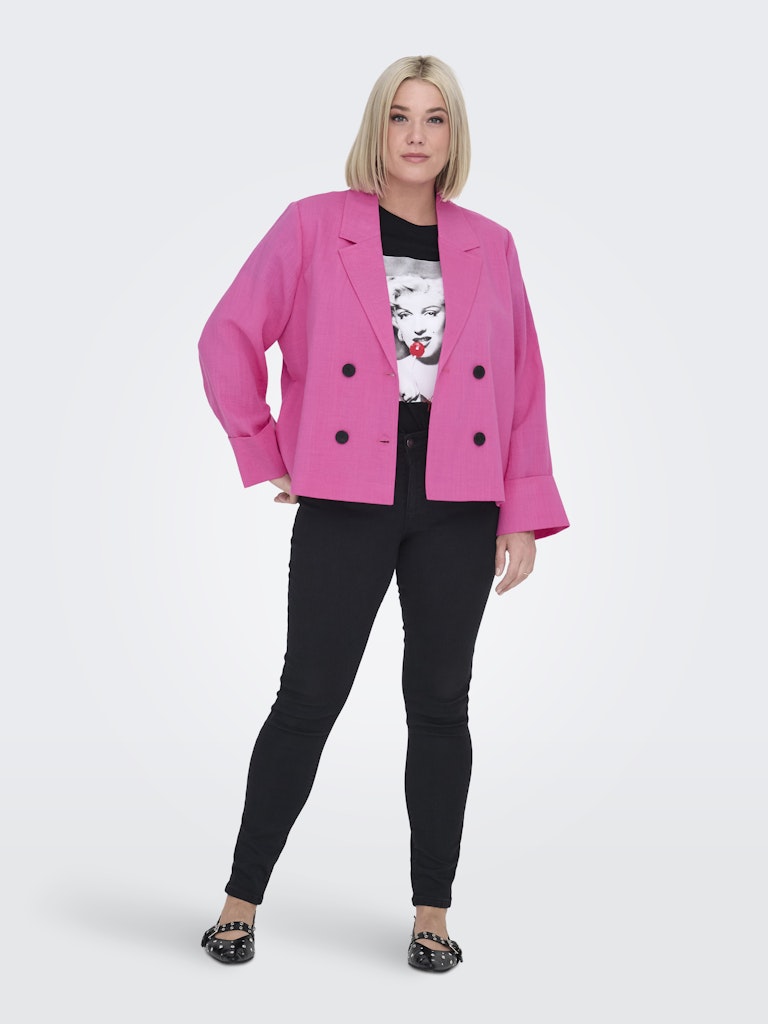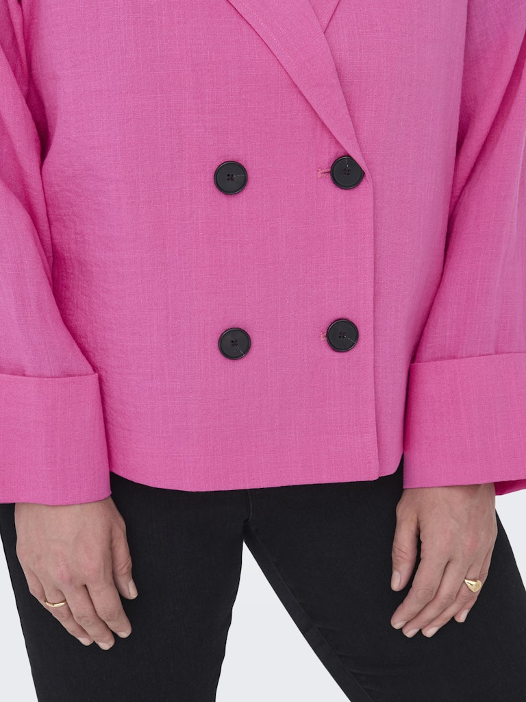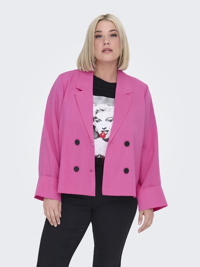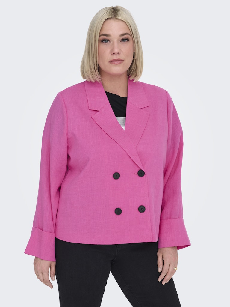 Opgrader din garderobe med denne elegante Fuchsia Fedora blazer fra ONLY CARMAKOMA, designet specielt til kurvede kvinder i størrelserne 42-54. Denne blazer er perfekt til at pifte dine yndlingsjeans op eller fuldende dit festlook. Med sin løse pasform og dobbeltradede lukning giver den både komfort og stil.