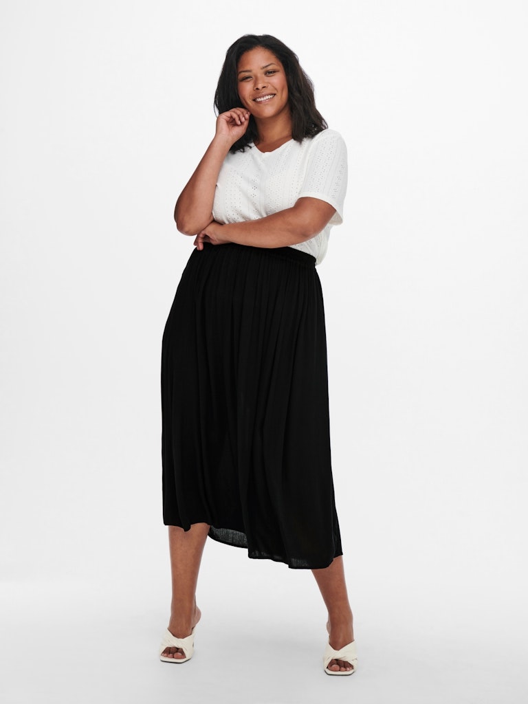 Opdag den perfekte blanding af komfort og stil med denne elegante nederdel fra ONLY CARMAKOMA. Denne lange nederdel er skabt til at fremhæve den smukke, feminine silhuet hos kurvede kvinder i størrelserne 42-54. Med en elastisk talje sikrer den en behagelig pasform, der følger dine bevægelser hele dagen. Uanset om du vælger den klassiske sorte eller den friske azurblå, er denne nederdel et alsidigt stykke, der passer til enhver lejlighed og sæson.