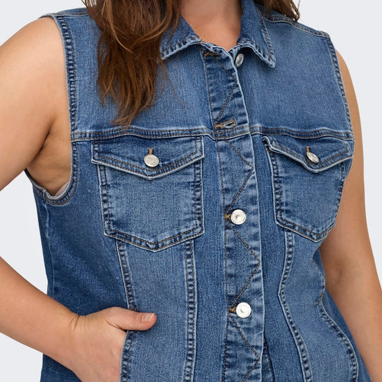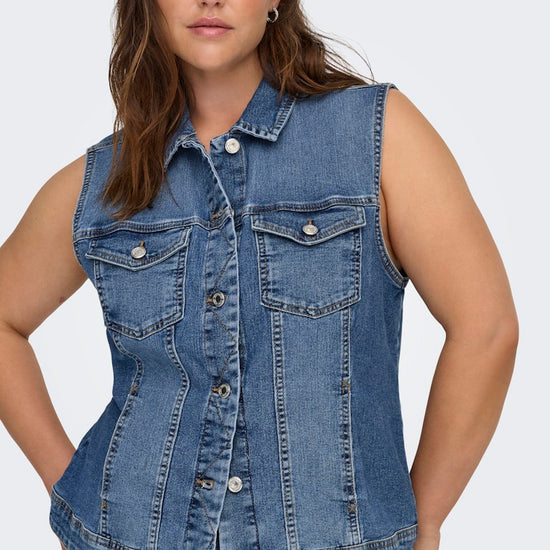 Giv din garderobe et friskt pust med denne stilfulde denimvest fra ONLY CARMAKOMA. Vesten er perfekt til dem, der elsker at lege med lag-på-lag looks. Vesten er ideel til både hverdag og afslappede anledninger, og den ærmeløse konstruktion giver dig mulighed for nemt at style med forskellige bluser eller T-shirts.