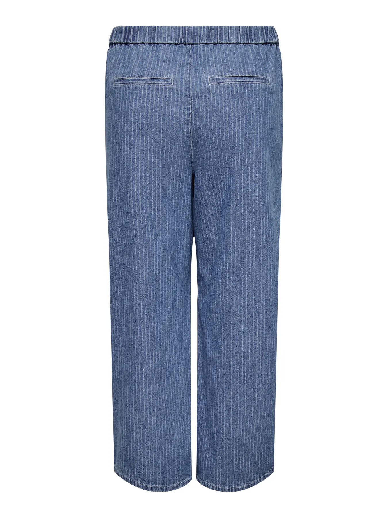 Disse bukser byder på et klassisk denimlook med et moderne twist i form af fine, vævede nålestriber, der giver dybde til den mellemblå farve. Det brede snit i benene skaber en afslappet silhuet, der både er behagelig at have på og følger tidens modetrends. Du får her et par smarte Only Carmakoma bukser, der kombinerer det rå udtryk fra denim med en feminin pasform.