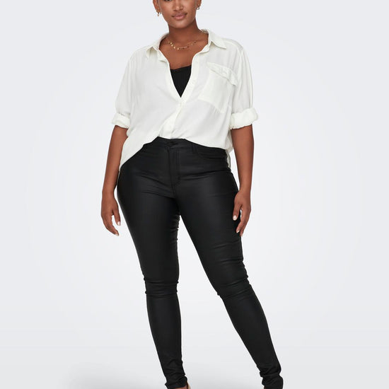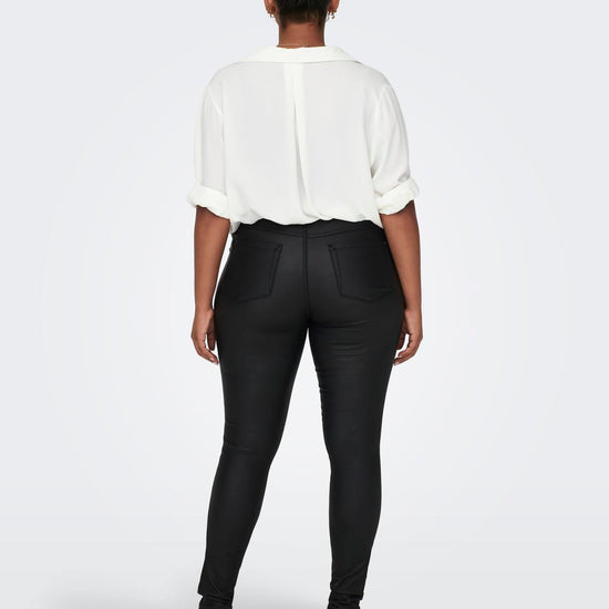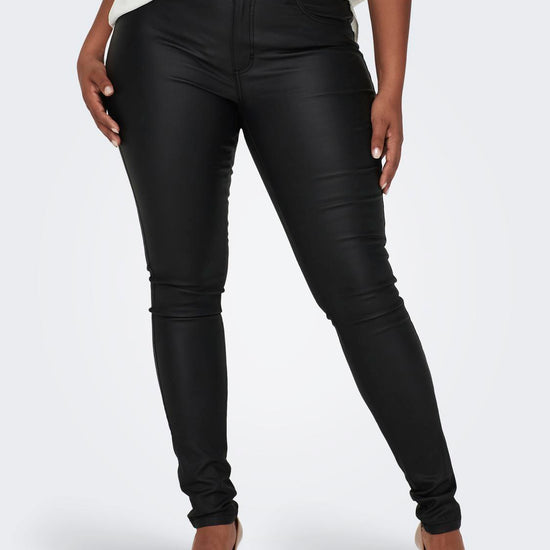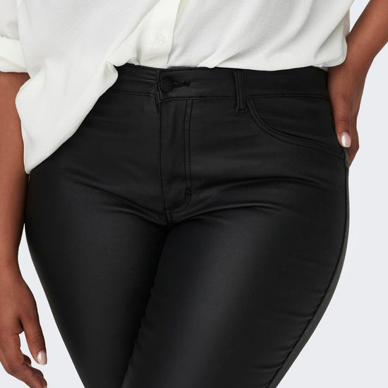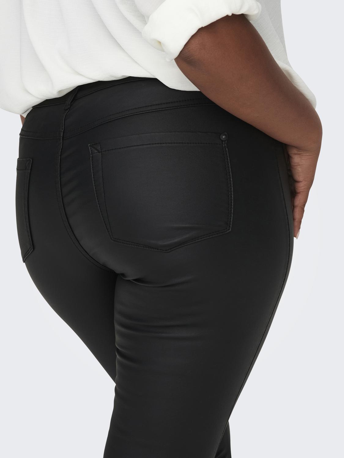 Coatede bukser i klassisk model. MIddel talje, smalle ben. Strækbart materiale.