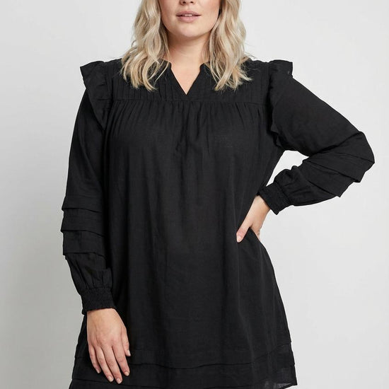 - Løs pasform med flæsedetaljer og lagdelt bund
