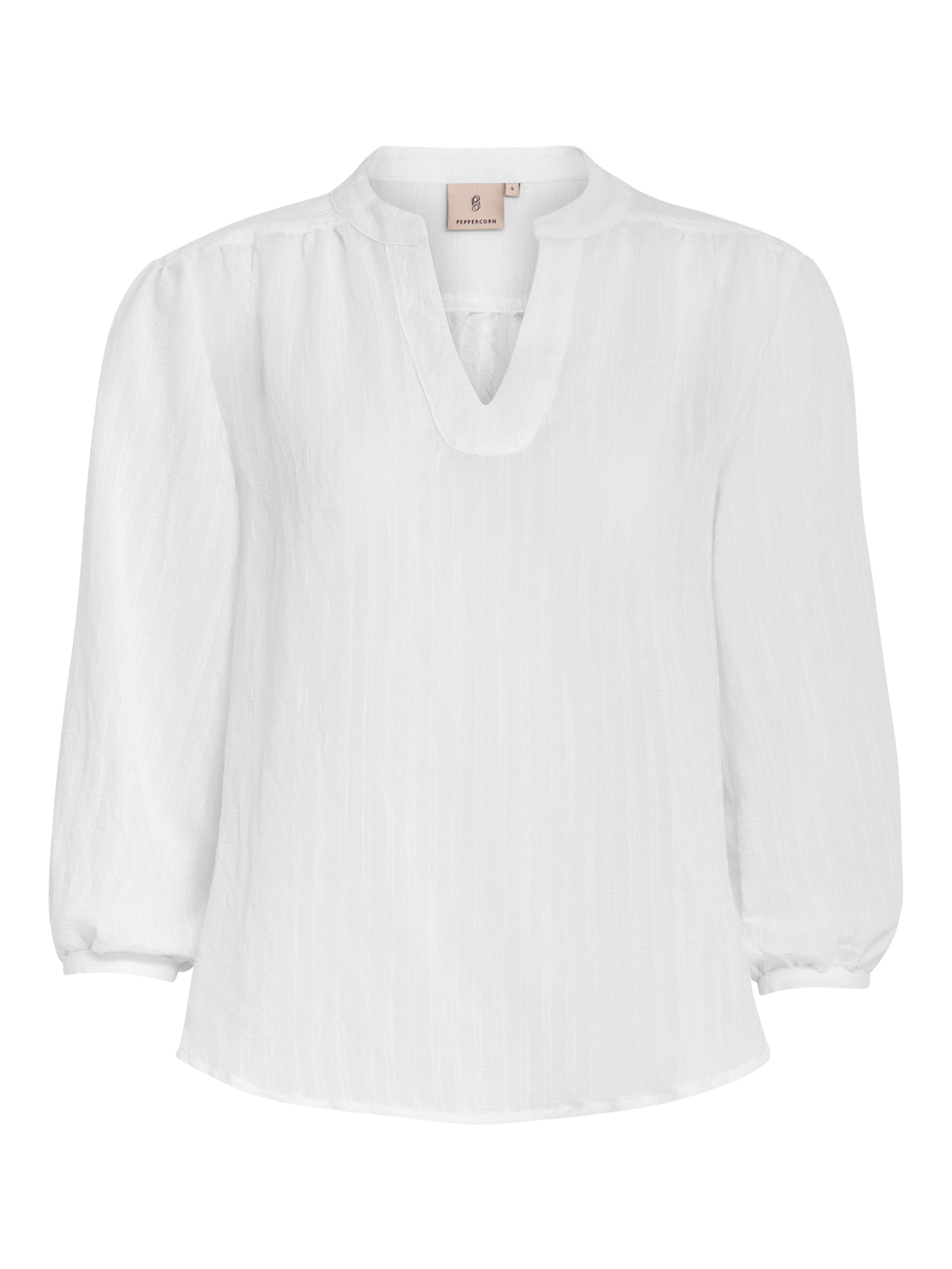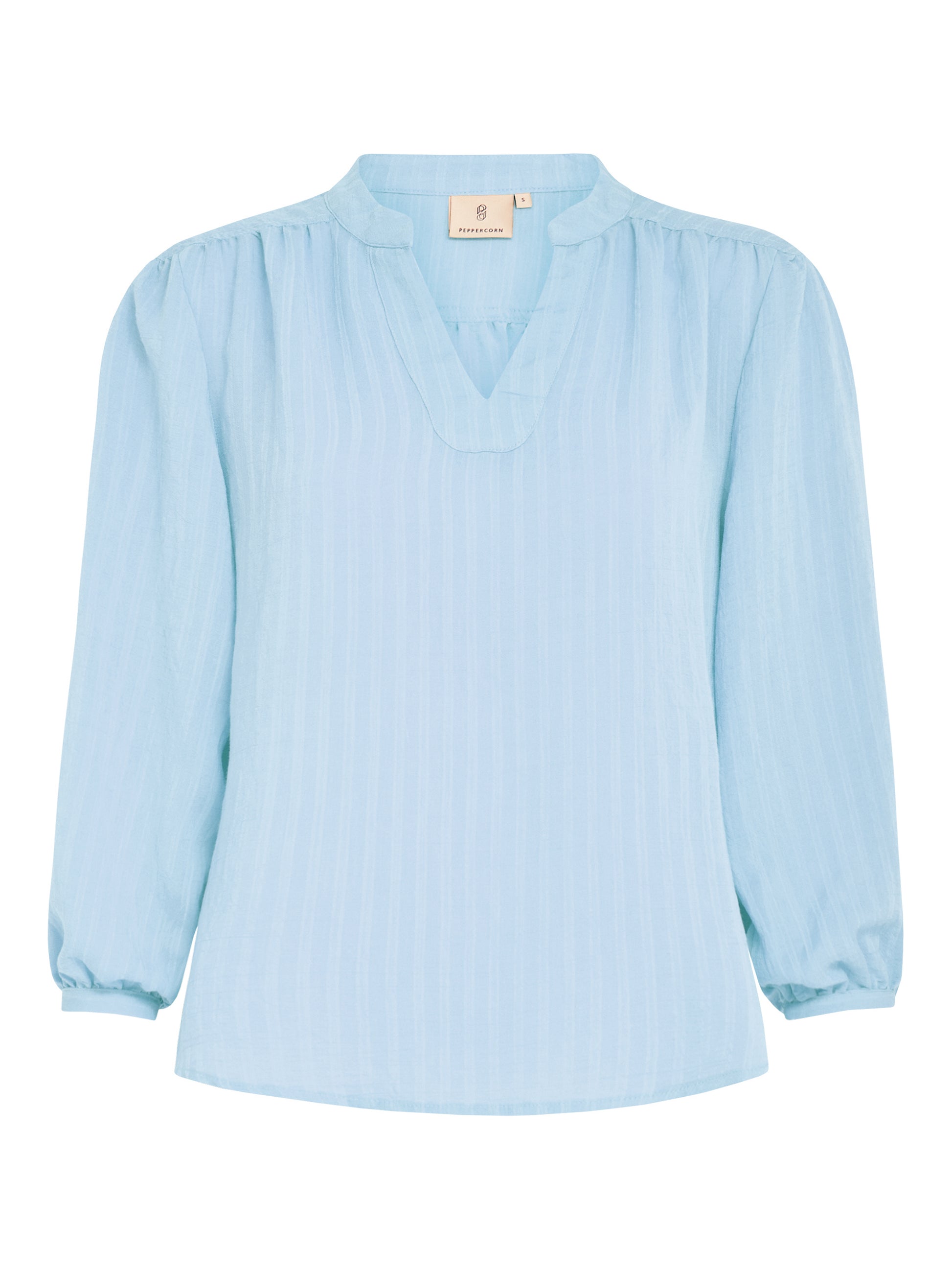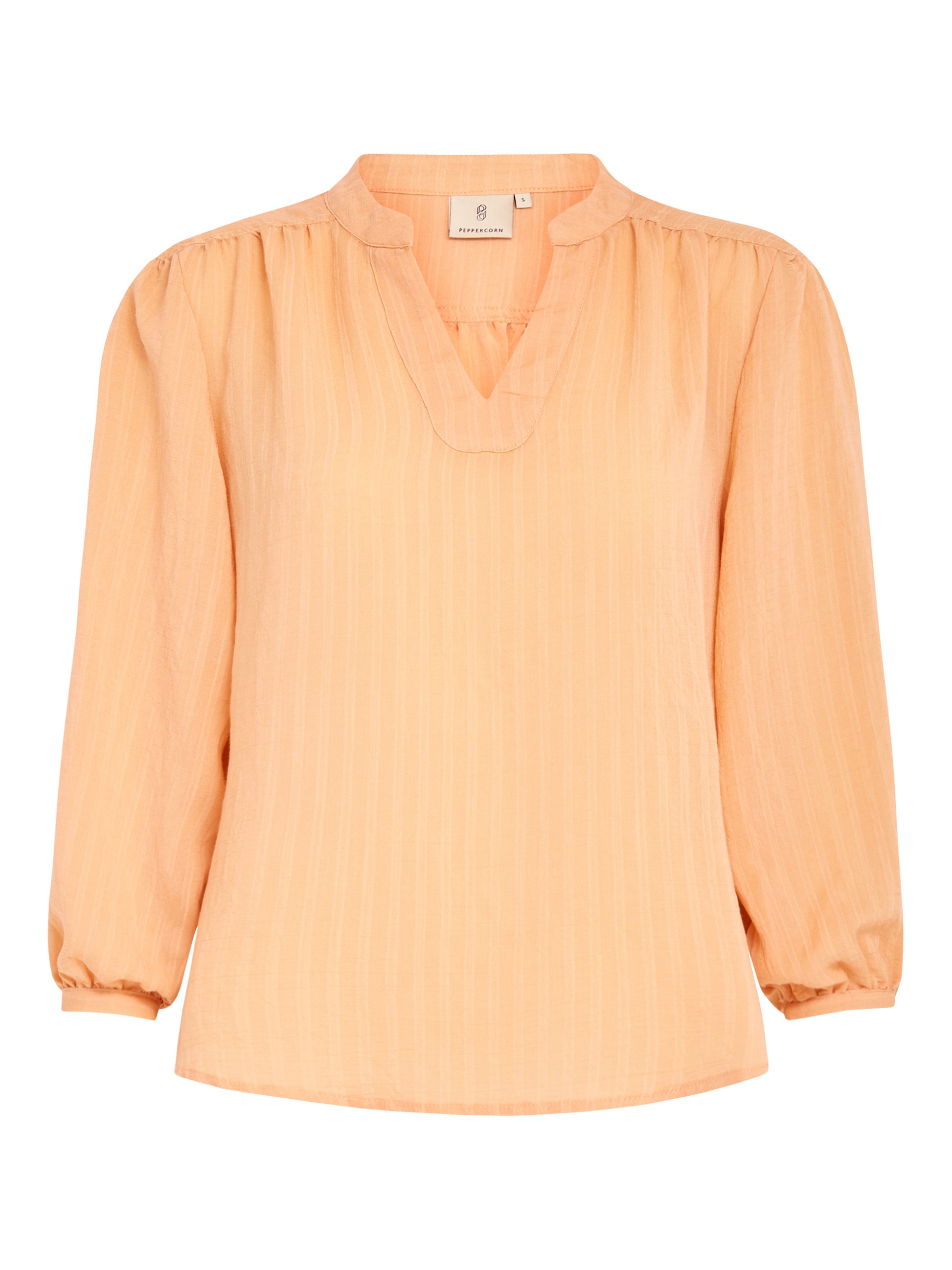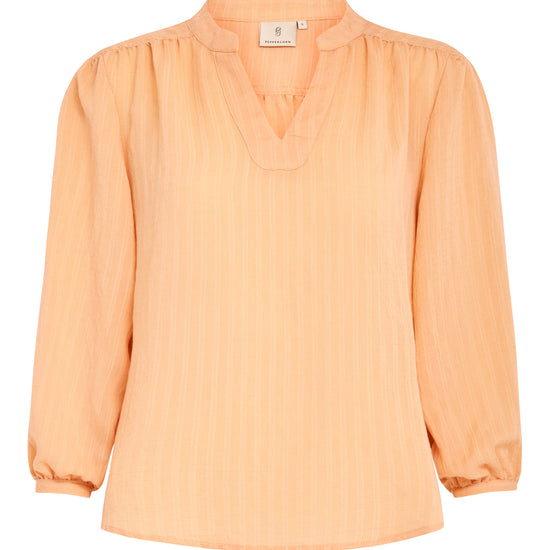 Oplev den perfekte kombination af stil og komfort med denne smukke bluse fra Peppercorn. Fremstillet i en let og åndbar blanding af 65% viskose og 35% polyester, er blusen ideel til sommerbrug. Den har et diskret stribet mønster, der tilføjer et sofistikeret touch til det samlede look. Med en flatterende V-udskæring og detaljeret ryg, tilbyder denne bluse både elegance og moderne flair.