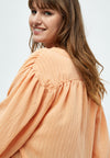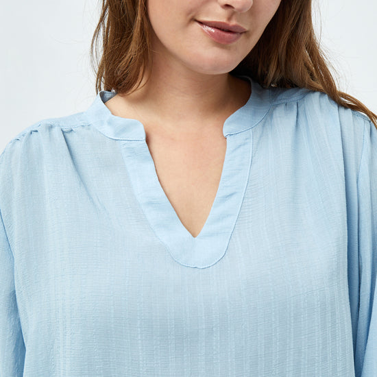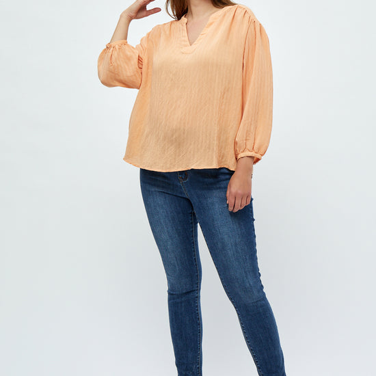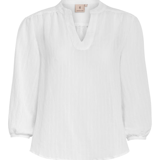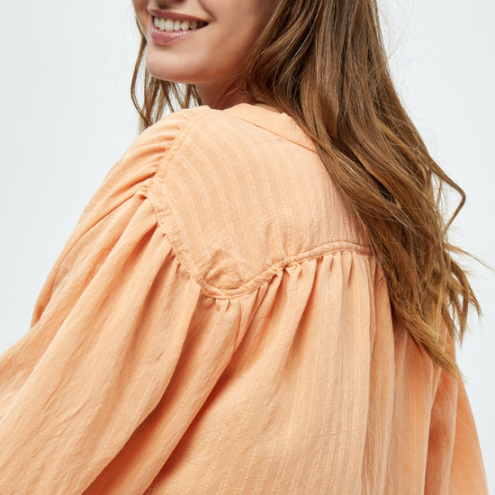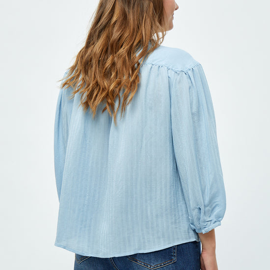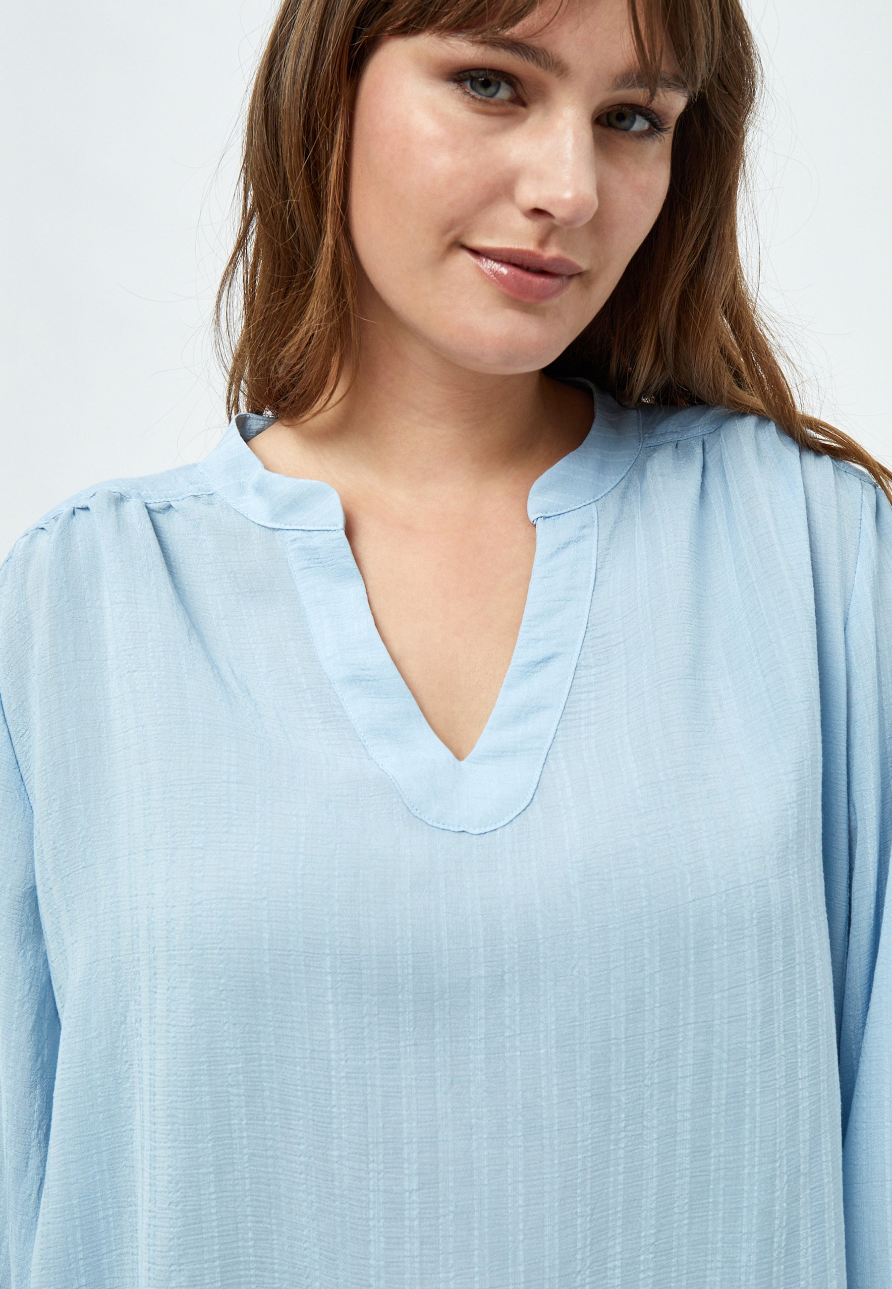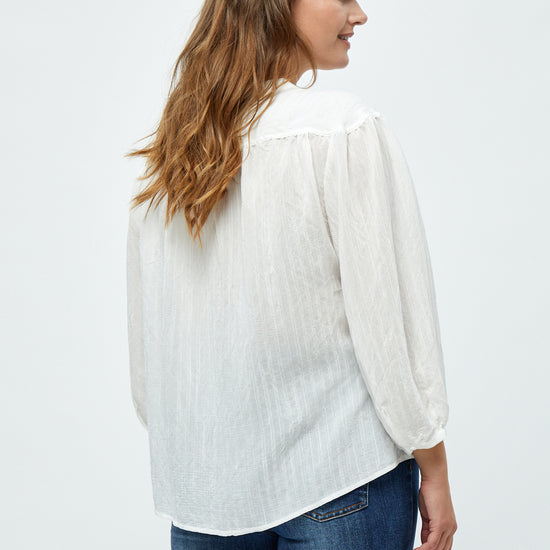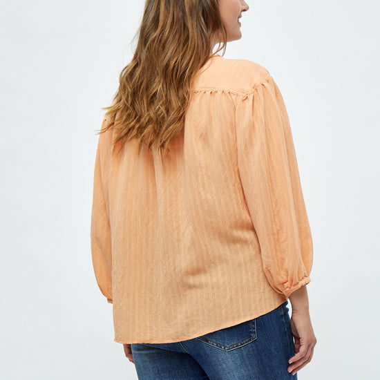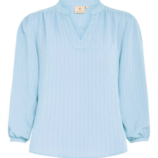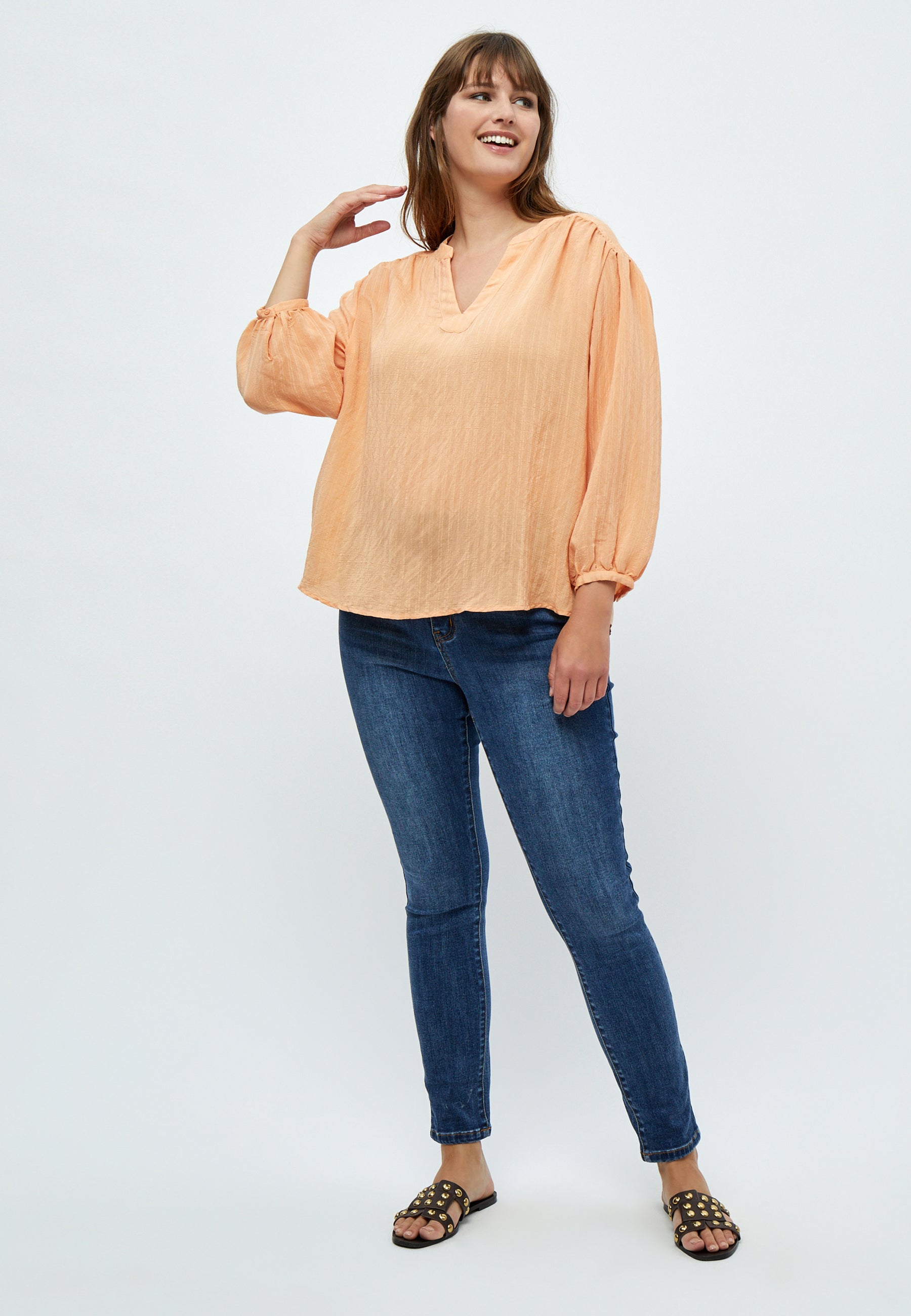 Oplev den perfekte kombination af stil og komfort med denne smukke bluse fra Peppercorn. Fremstillet i en let og åndbar blanding af 65% viskose og 35% polyester, er blusen ideel til sommerbrug. Den har et diskret stribet mønster, der tilføjer et sofistikeret touch til det samlede look. Med en flatterende V-udskæring og detaljeret ryg, tilbyder denne bluse både elegance og moderne flair.