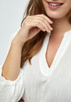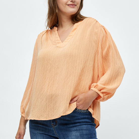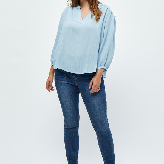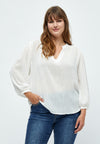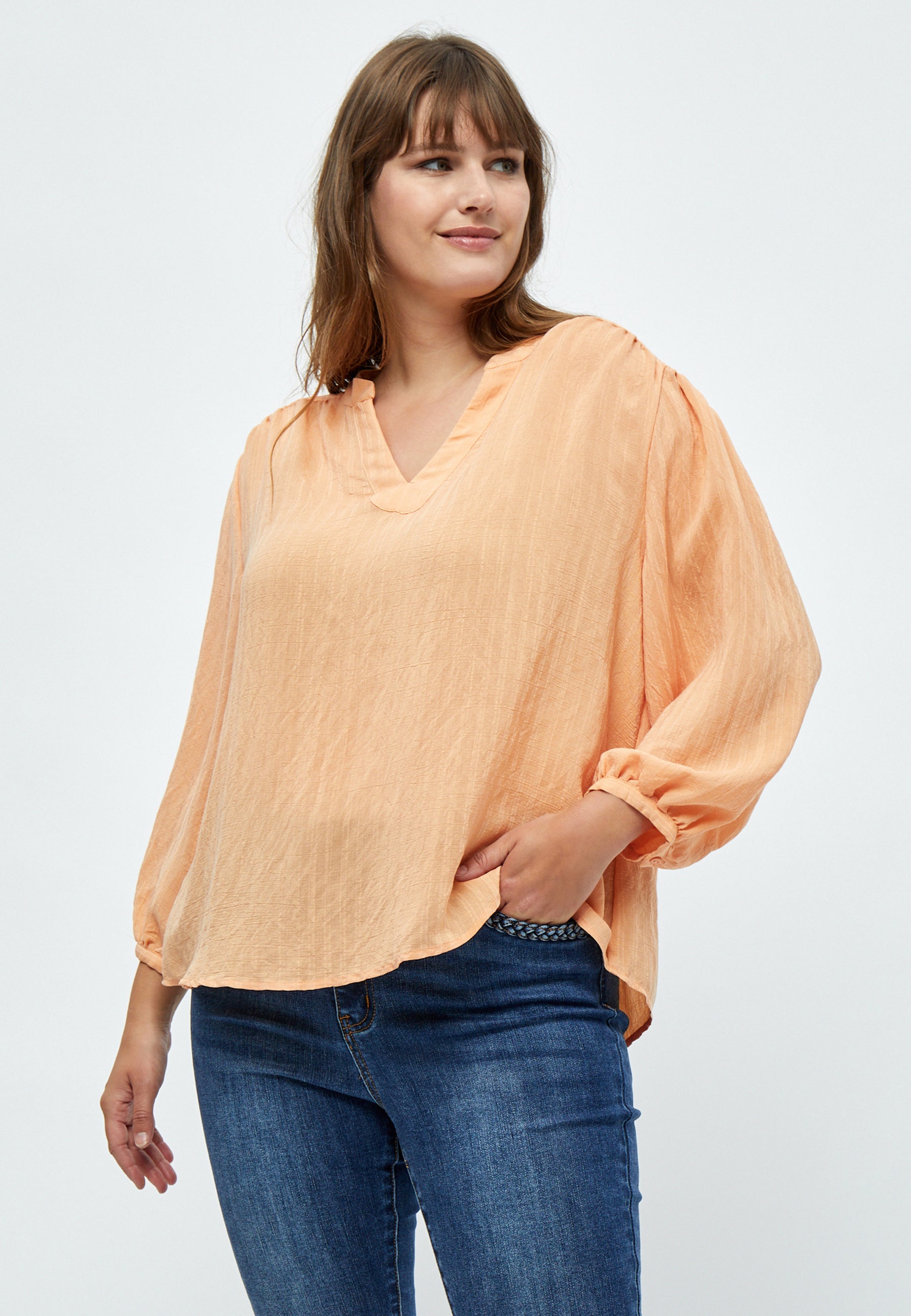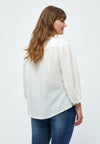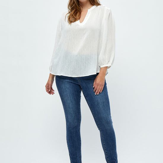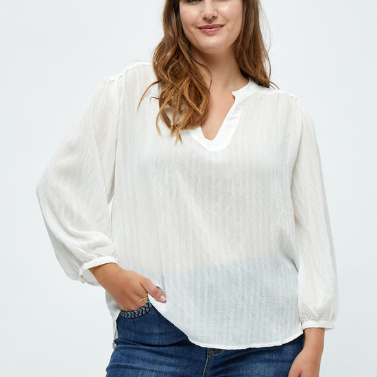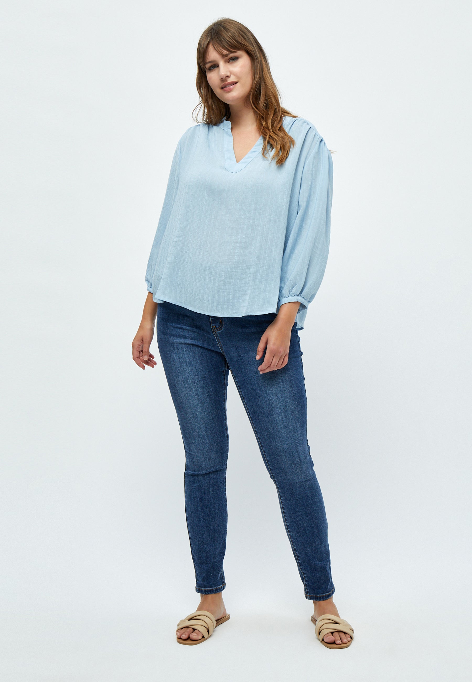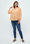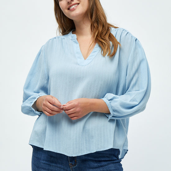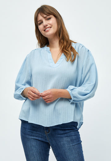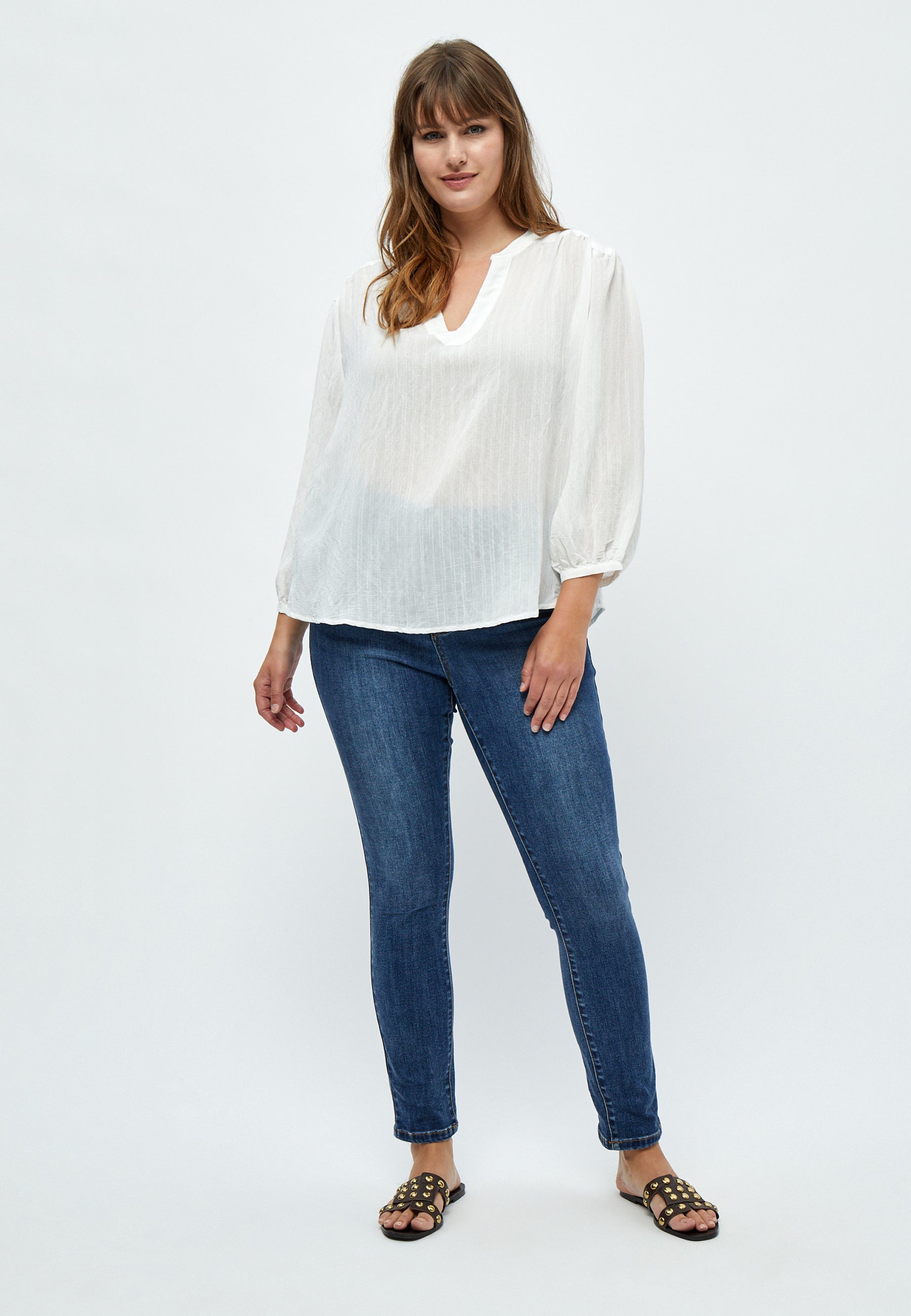 Blusens design sikrer en behagelig pasform, der nemt kan styles med både plus size jeans eller shorts for et afslappet og stilfuldt hverdagslook.
