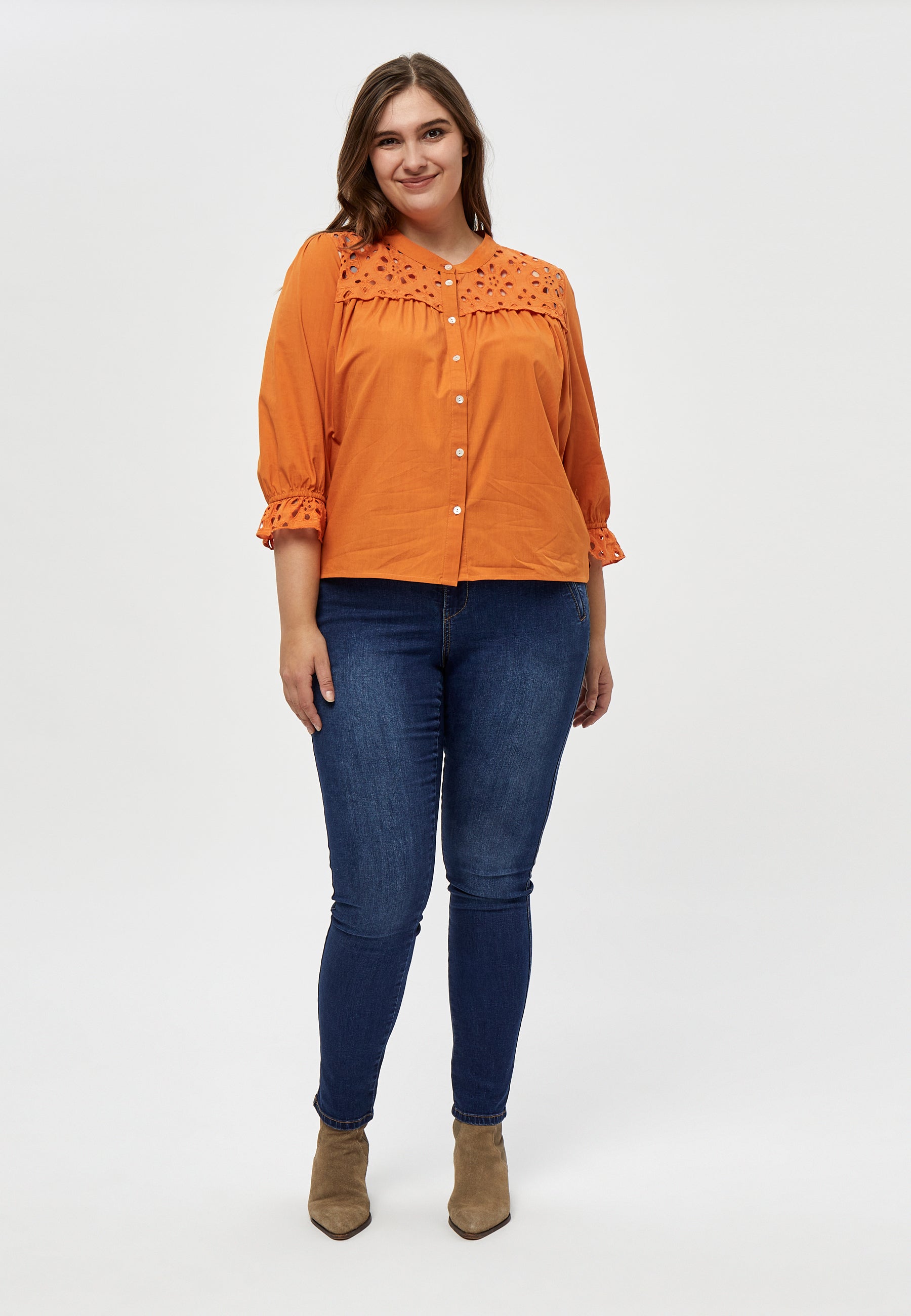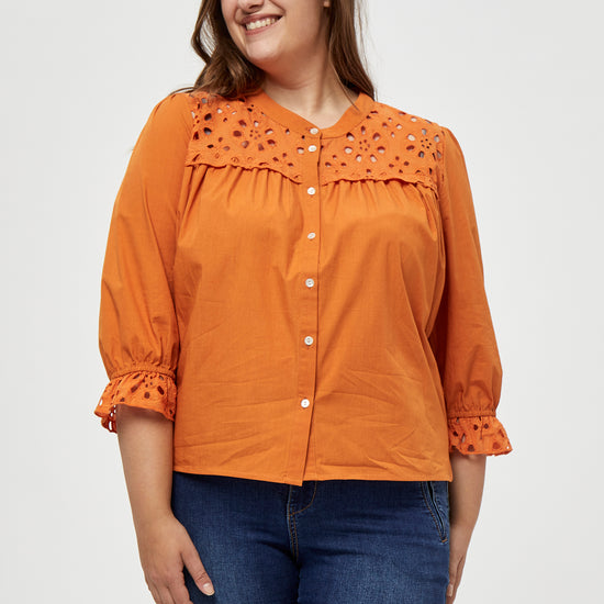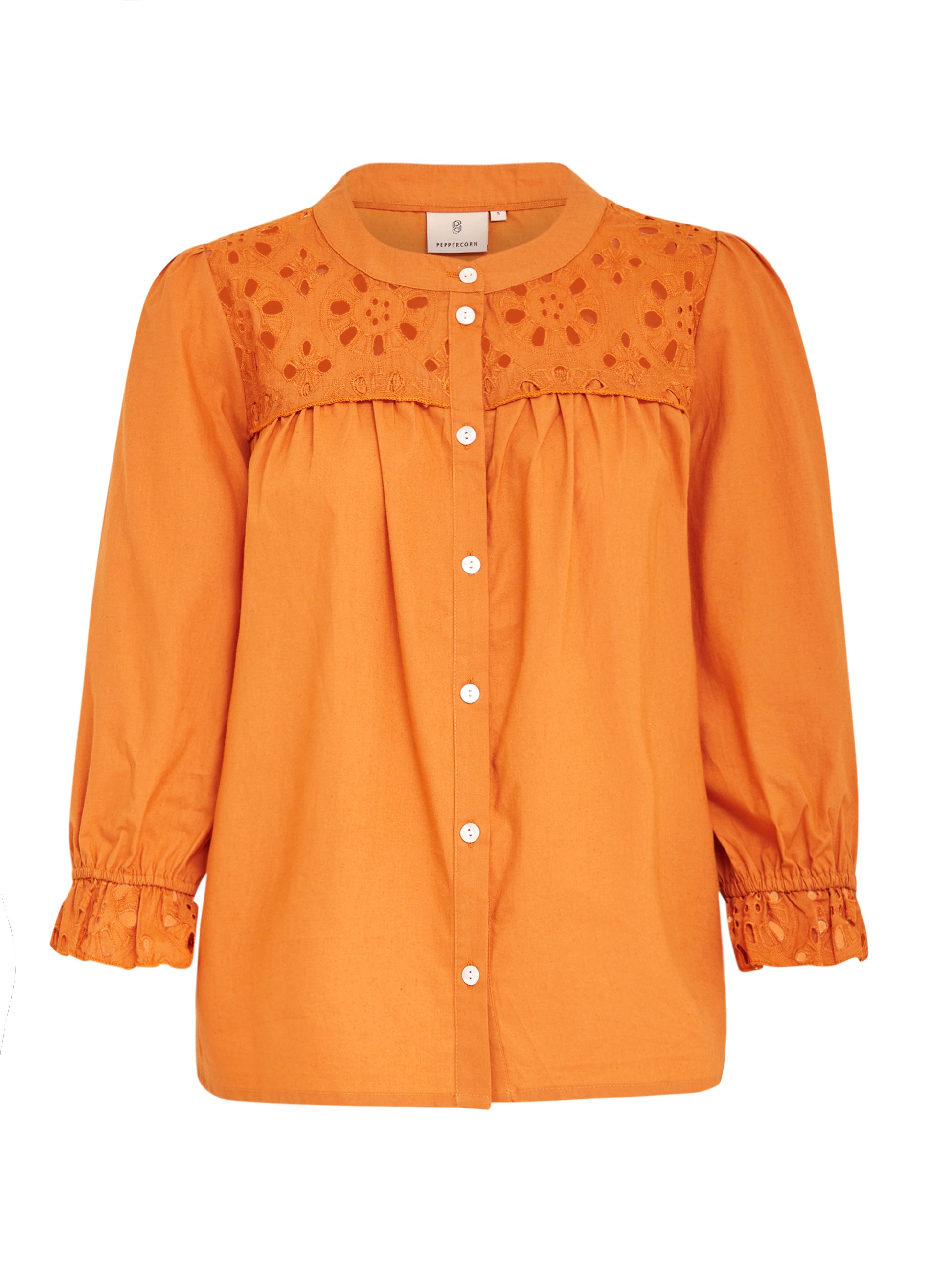 Oplev en perfekt kombination af stil og komfort med denne smukke bluse fra Peppercorn. Fremstillet af 100% bomuld, sikrer denne bluse både åndbarhed og blødhed, hvilket gør den ideel til hverdagsbrug. Den varme Peach Caramel farve tilføjer et livligt og efterårsagtigt touch til din garderobe.