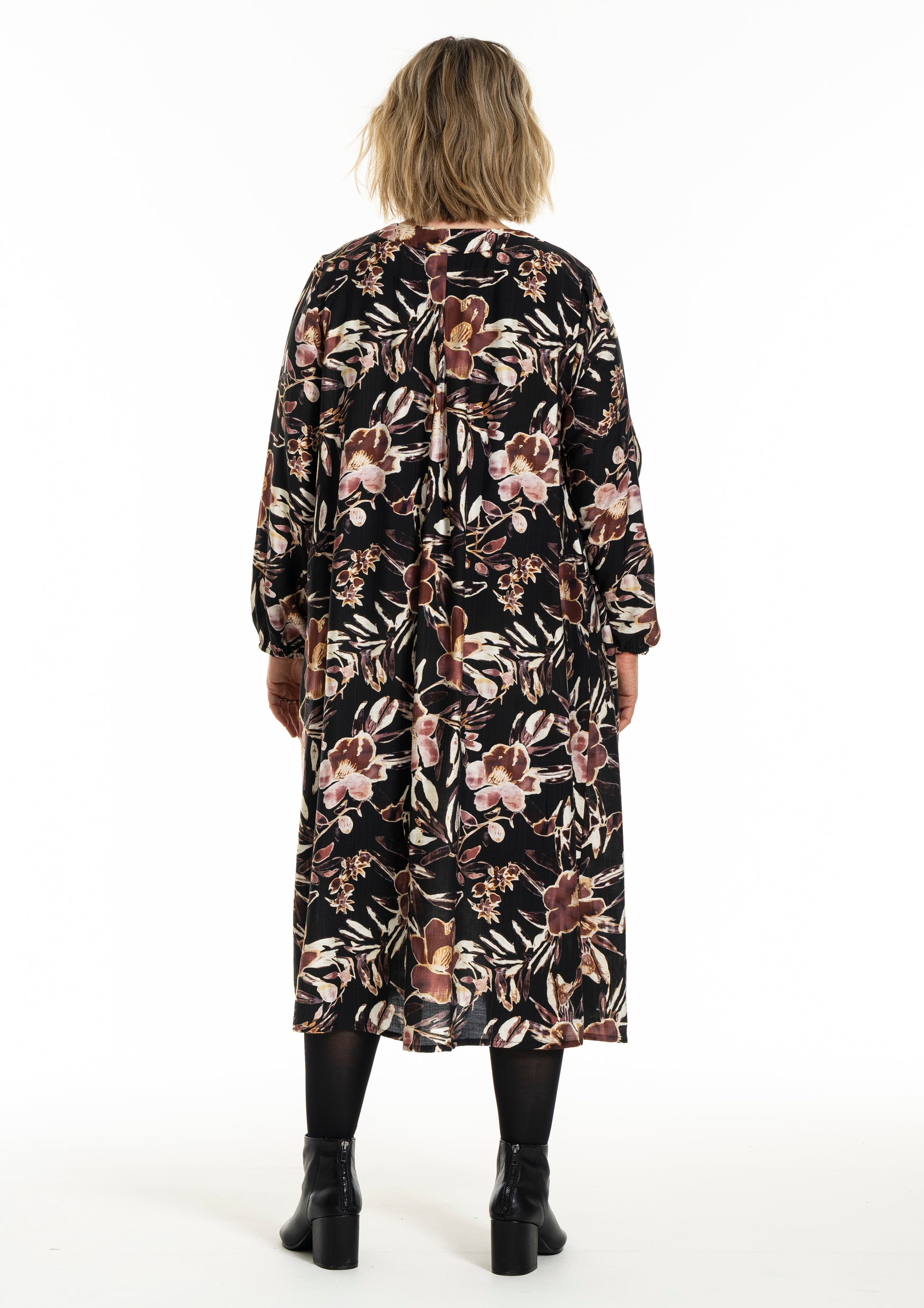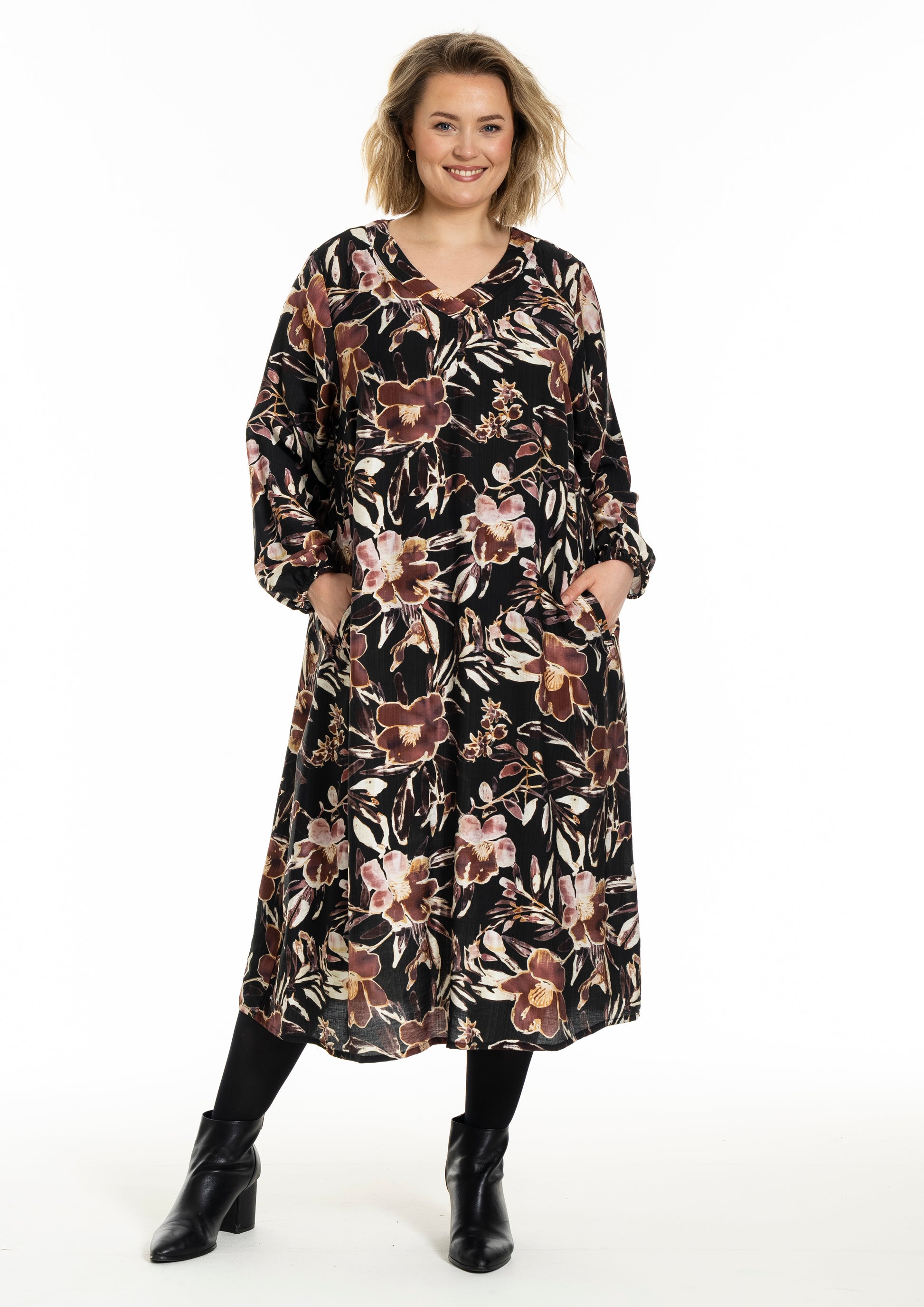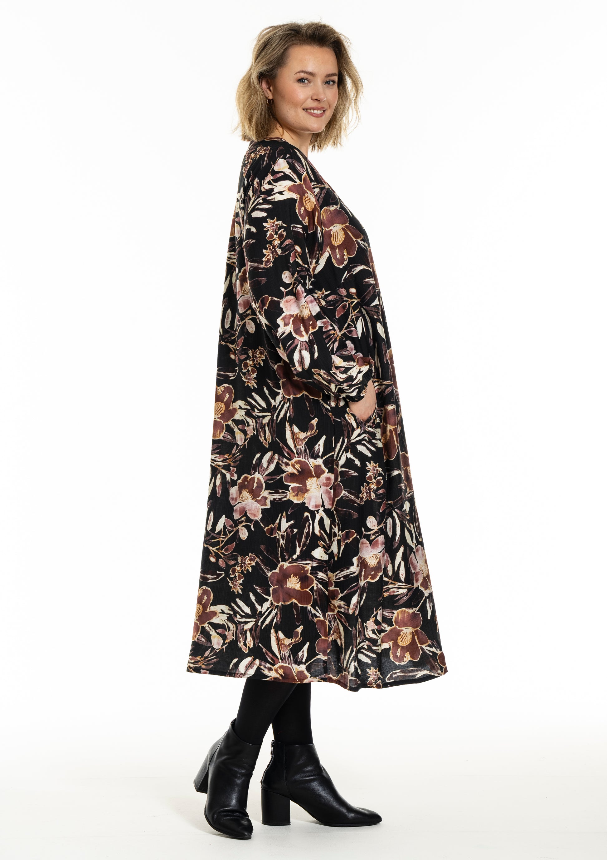 Få en moderne og behagelig stil med denne kjole fra Gozzip Woman. Den løstsiddende pasform og det smukke grafiske black print gør kjolen velegnet til både hverdagsbrug og festlige anledninger. Stoffet i 80% viskose og 20% nylon føles blødt og let mod huden, så du kan bevæge dig frit hele dagen.