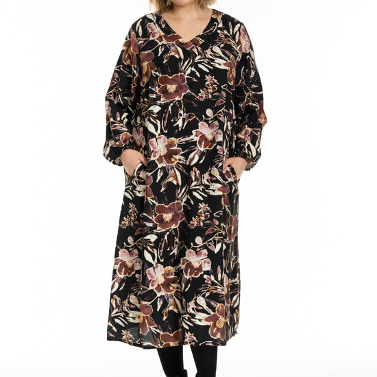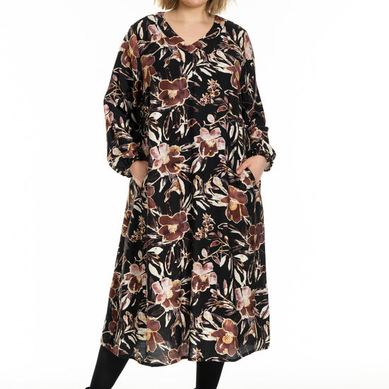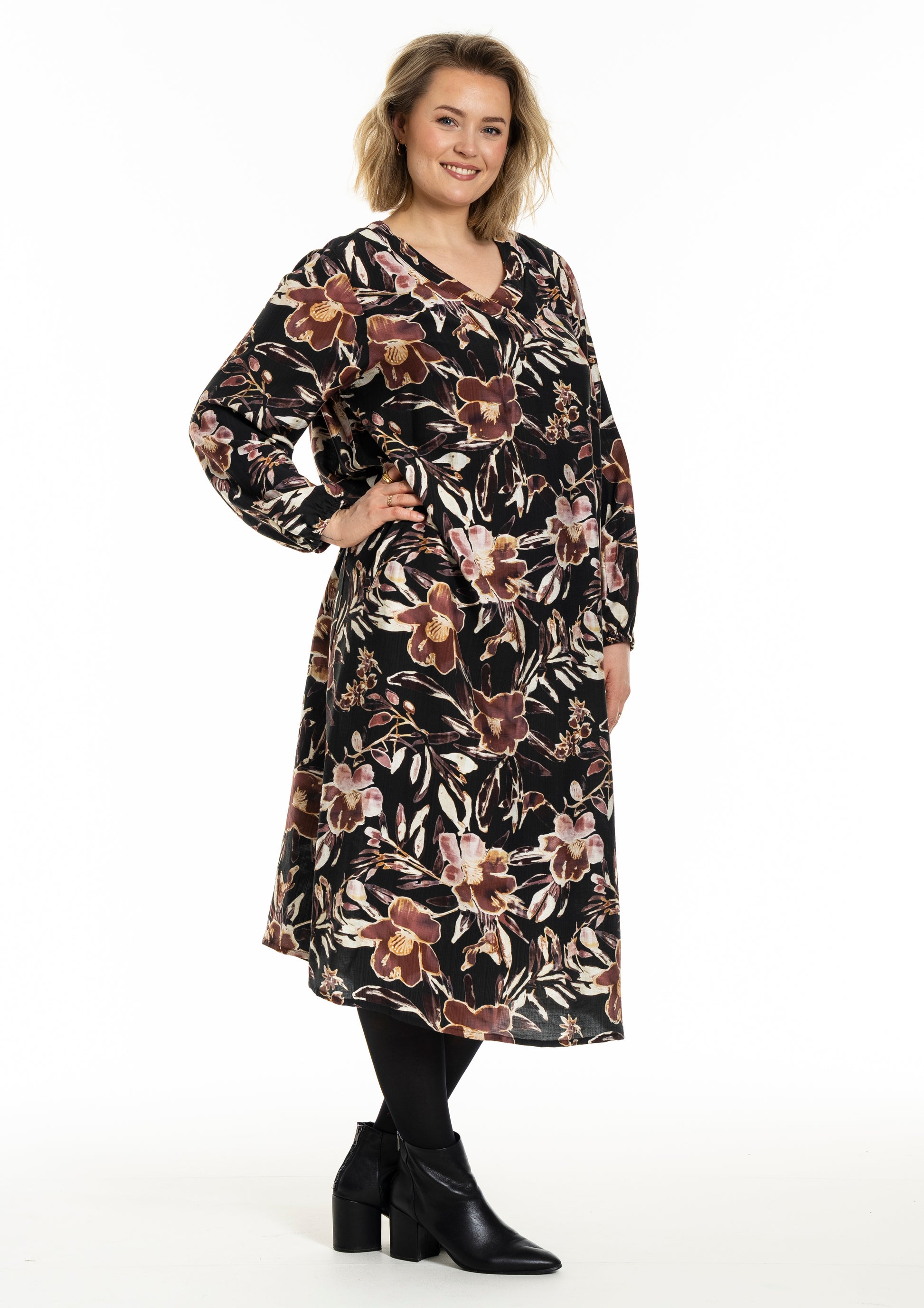 Kjolen er ideel med et par leggings eller strømpebukser fra vores plus size leggings eller plus size strømpebukser. Du får en alsidig kjole, der hurtigt bliver en favorit i garderoben.