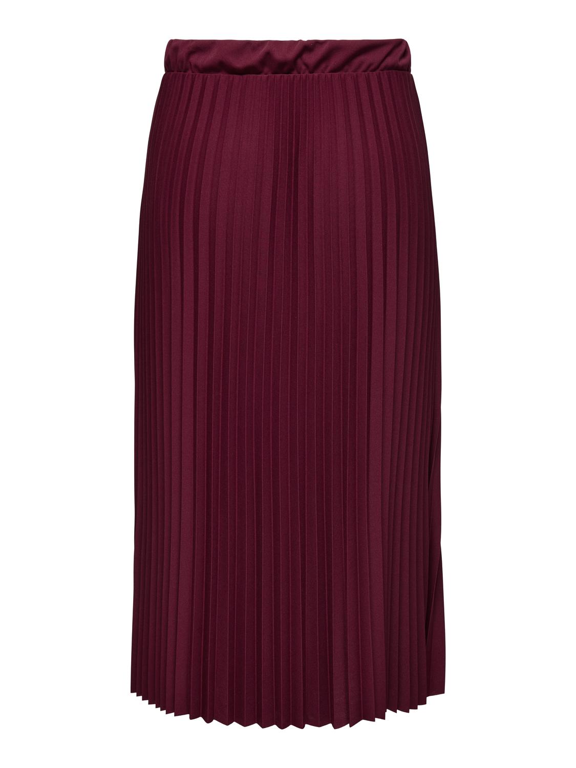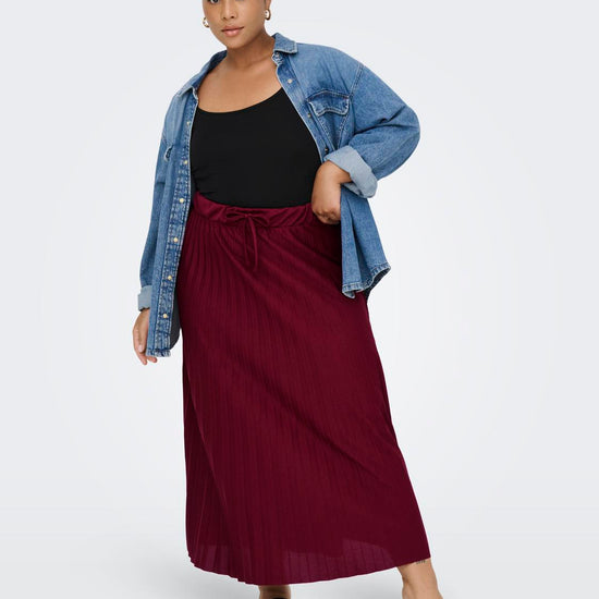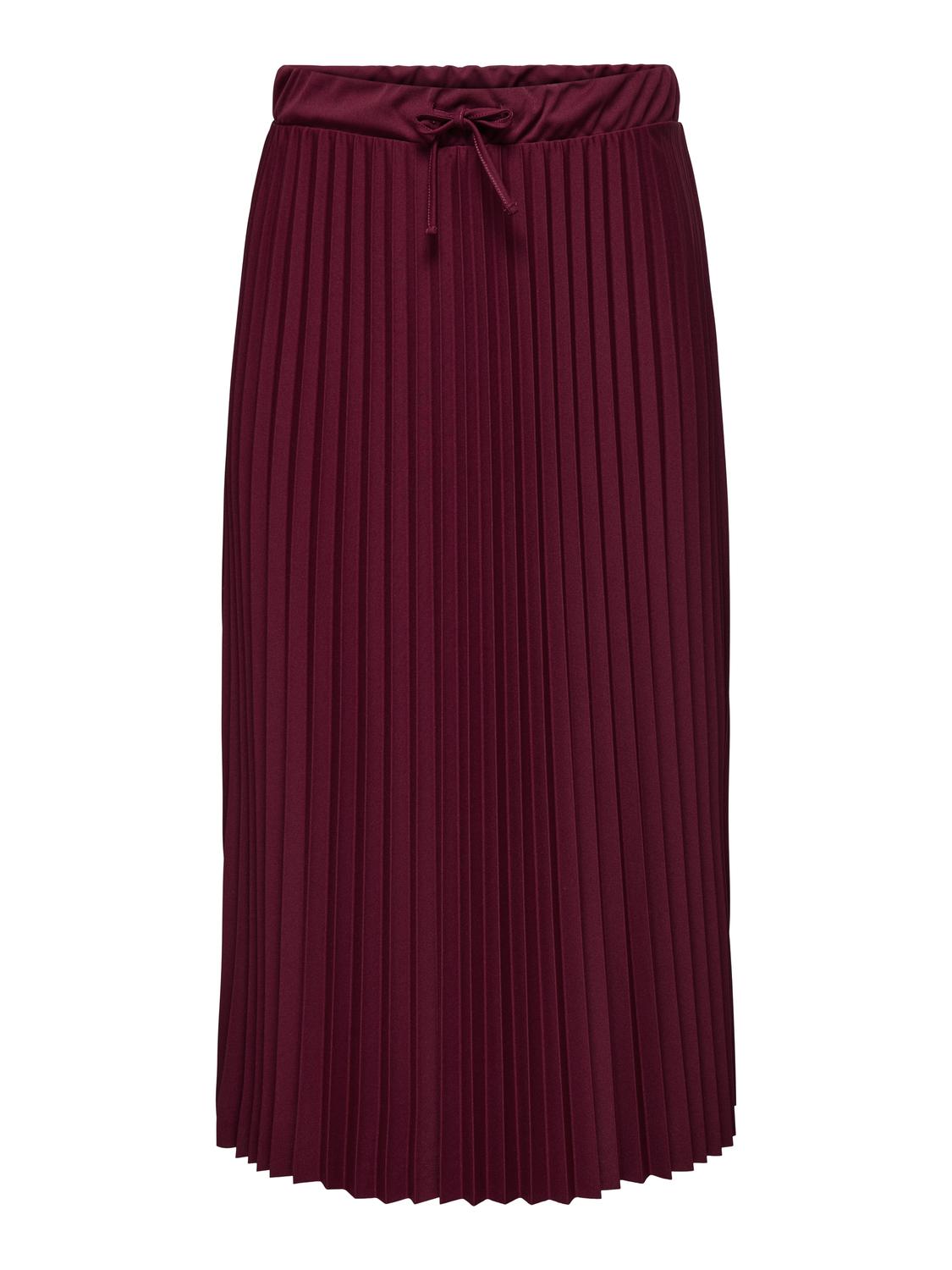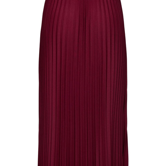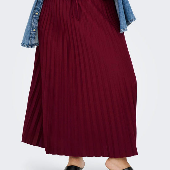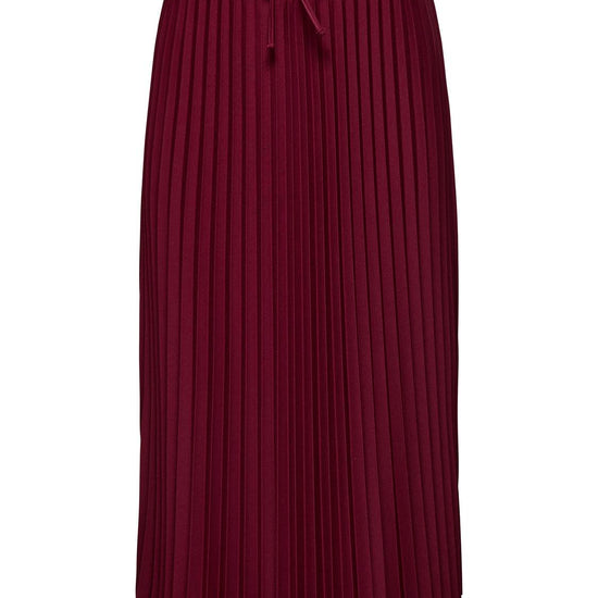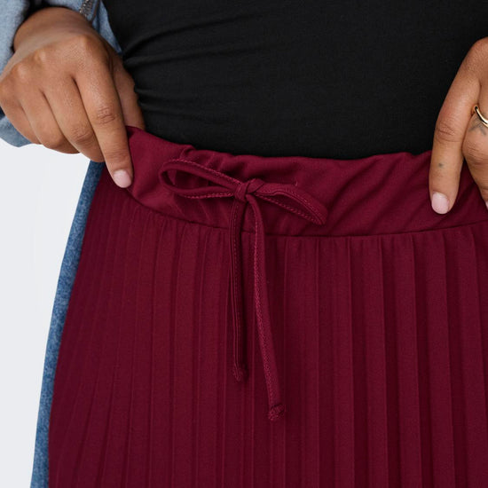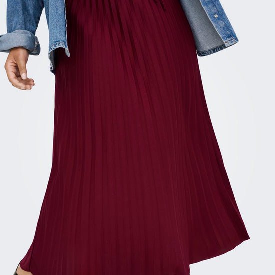 Dette plisséskørt kombinerer et feminint look med komfort takket være det elastiske talje-bånd. Nederdelen har en midi-længde og prydes af fine plissé-detaljer, der giver et let og levende udtryk. Den dybe Cabernet-farve tilføjer et elegant og varmt touch, som passer godt til efterårets garderobe.