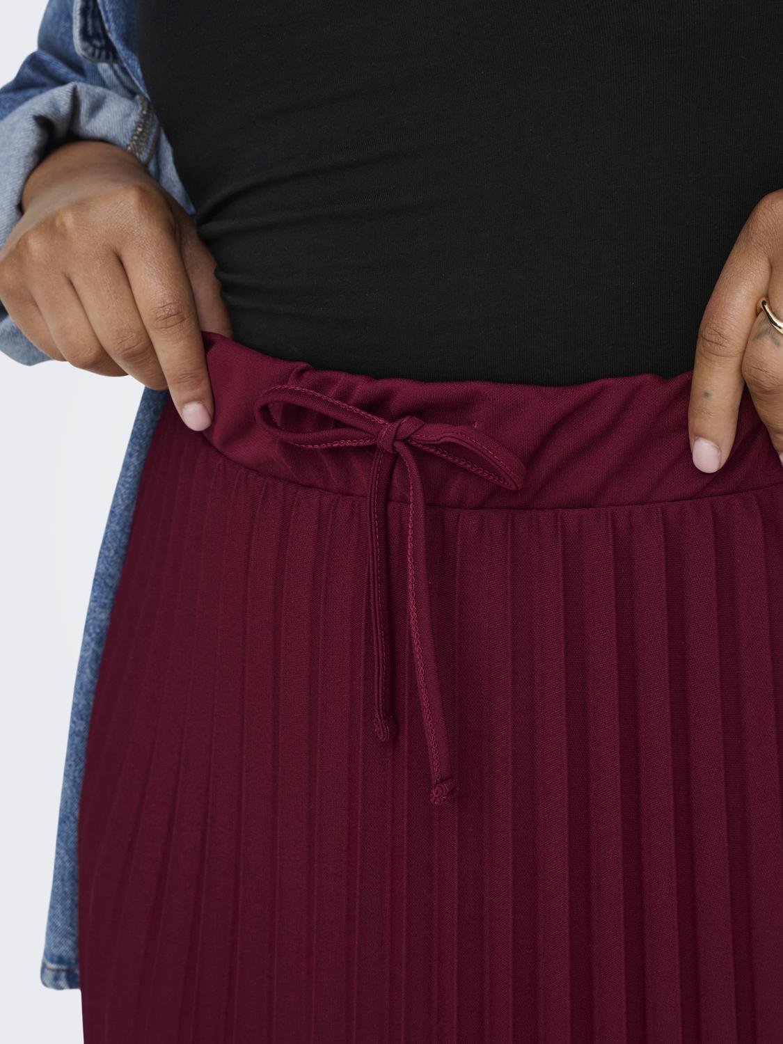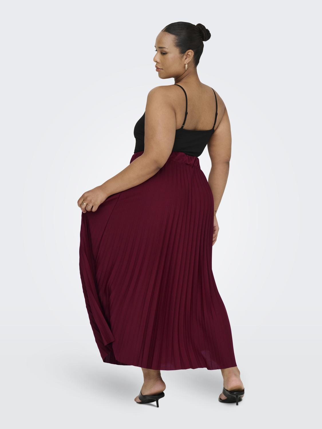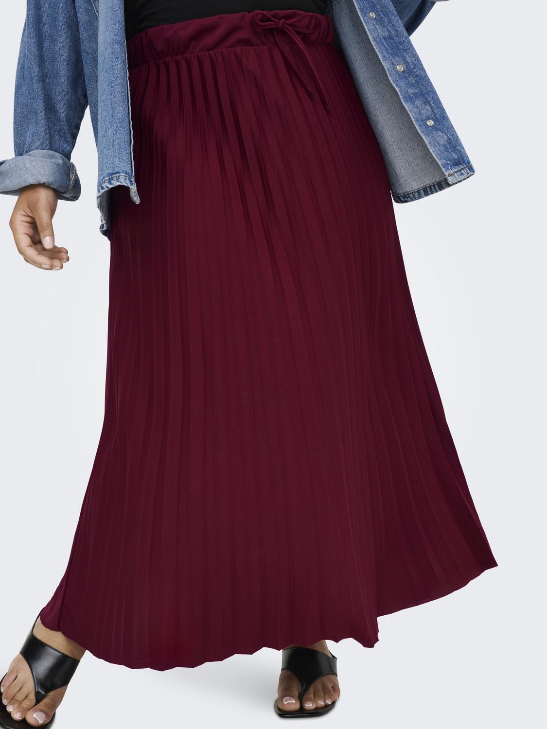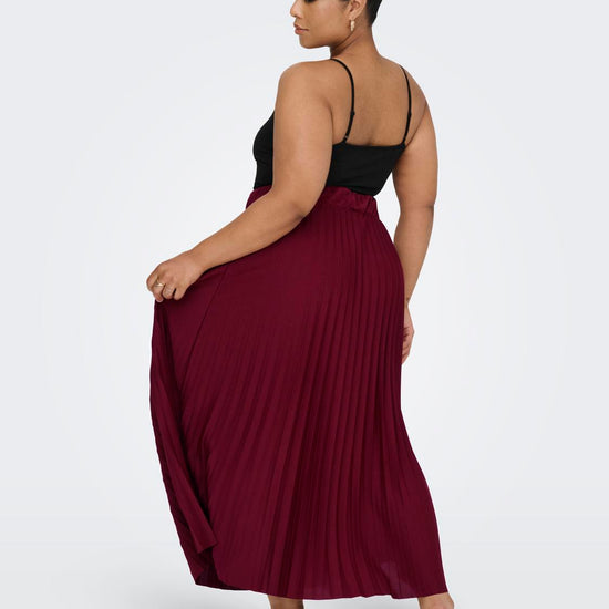 Dette plisséskørt kombinerer et feminint look med komfort takket være det elastiske talje-bånd. Nederdelen har en midi-længde og prydes af fine plissé-detaljer, der giver et let og levende udtryk. Den dybe Cabernet-farve tilføjer et elegant og varmt touch, som passer godt til efterårets garderobe.