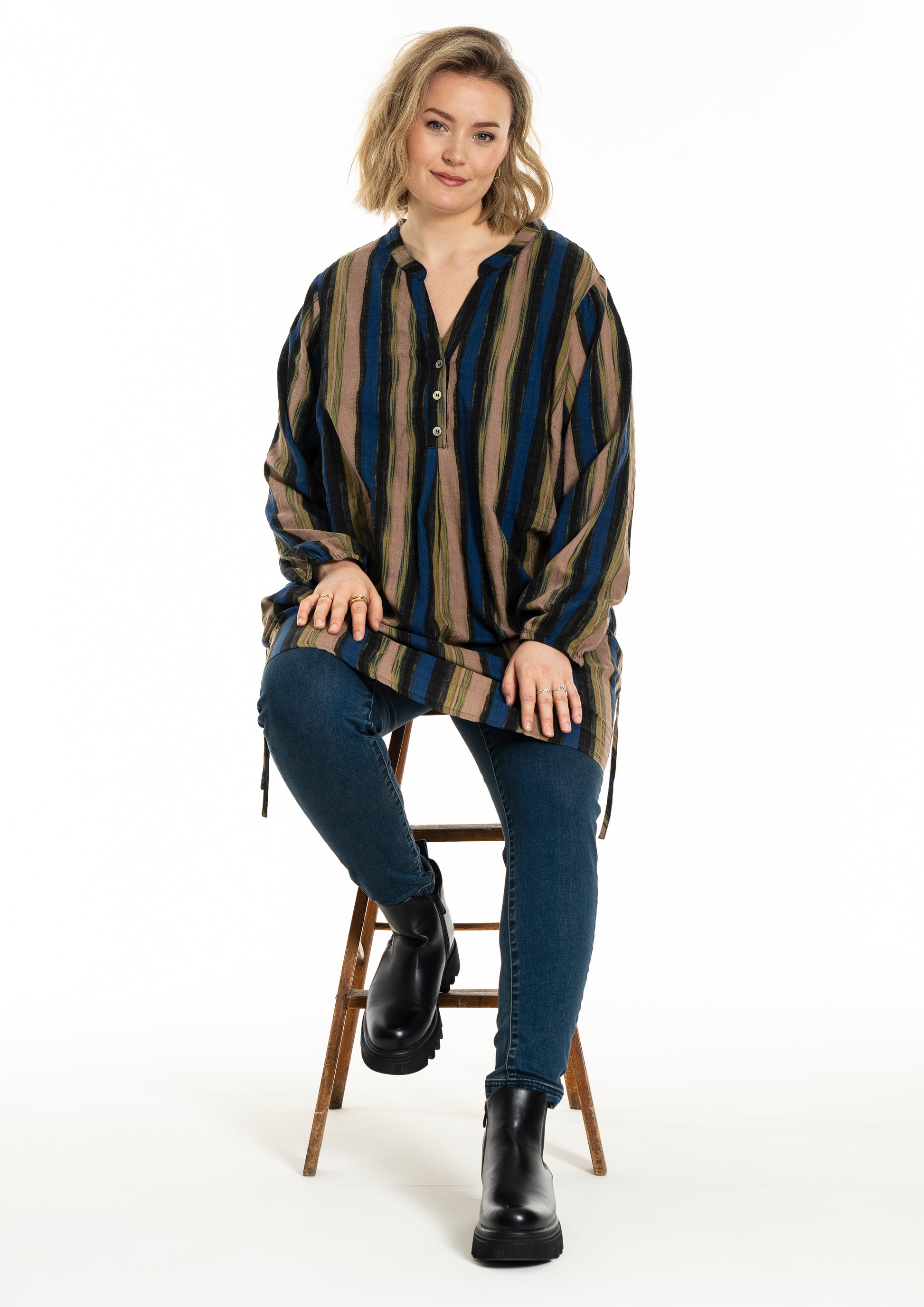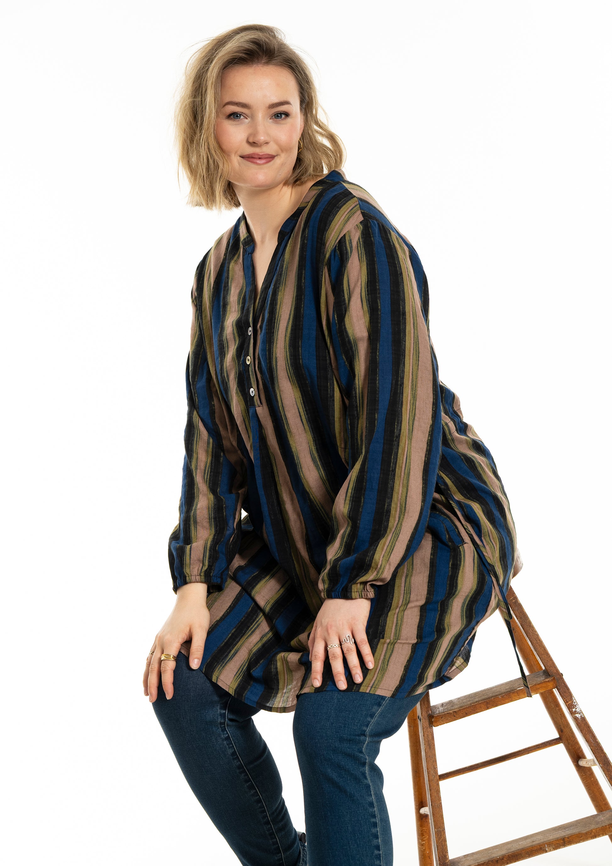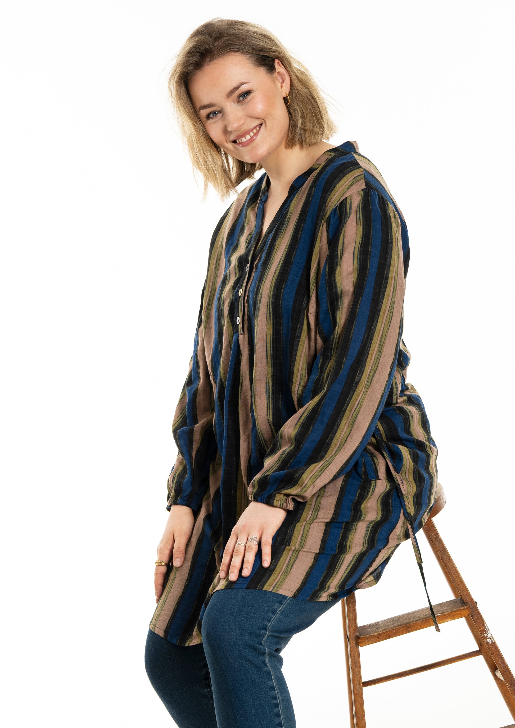 Stilfuld stribet tunika i blød kvalitet