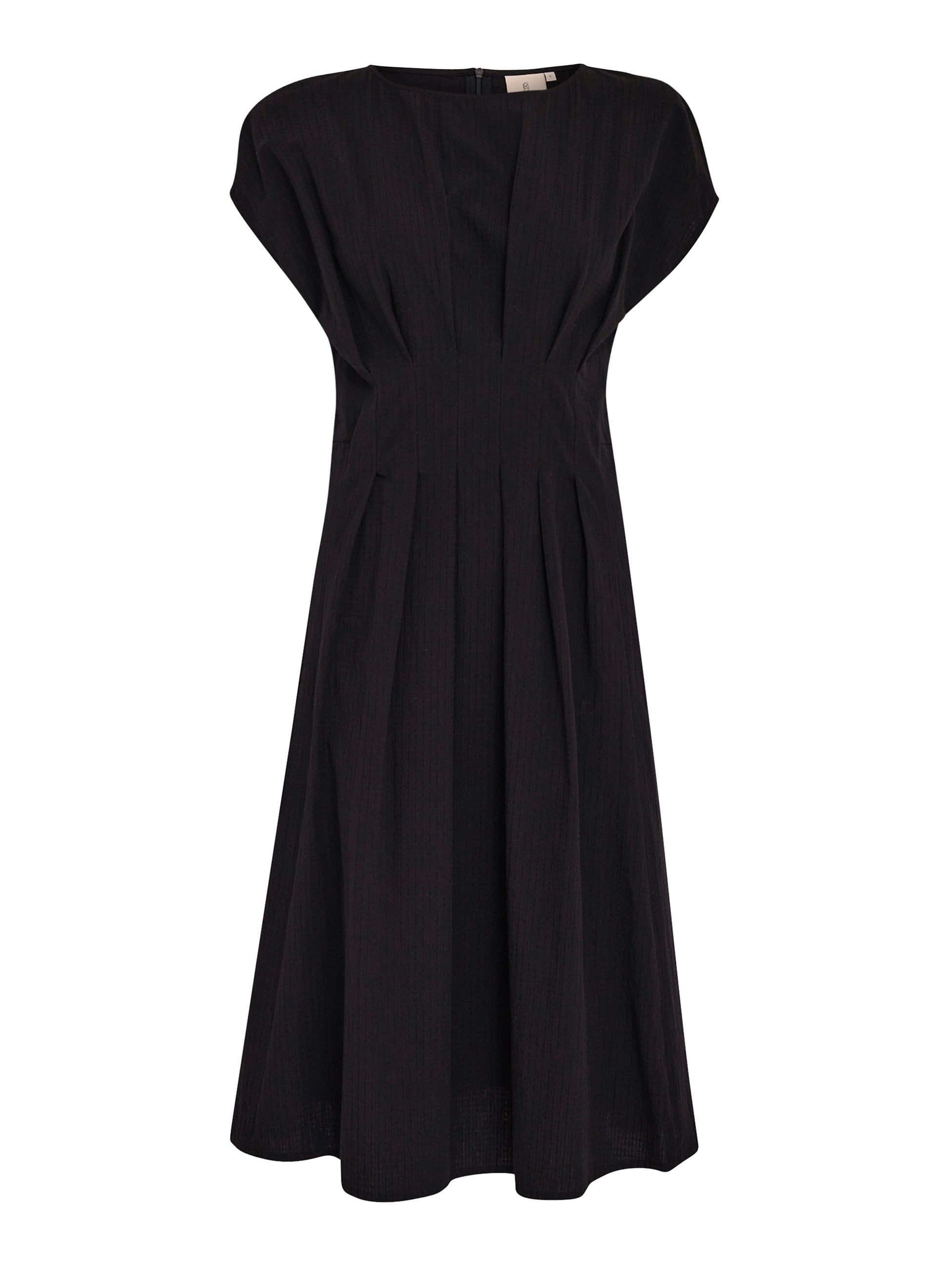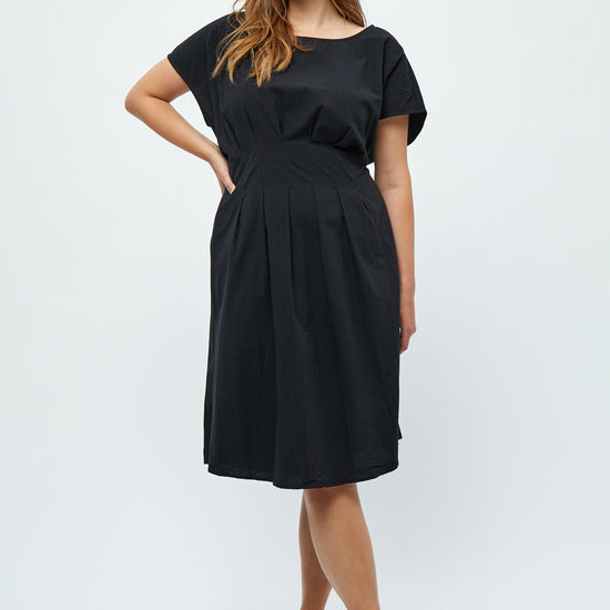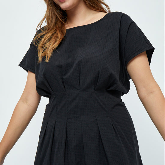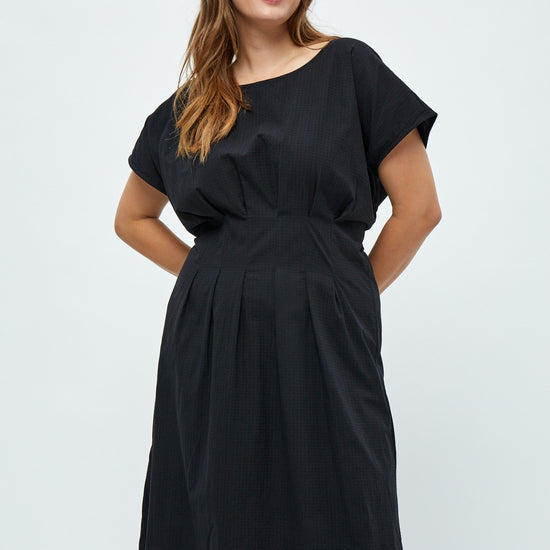 Oplev den stilfulde og komfortable kjole fra Peppercorn, der er designet til at fremhæve din unikke stil. Denne kjole er lavet i 100% bomuld, hvilket sikrer en blød og behagelig følelse mod huden. Med dens skrå ærmer og runde halsudskæring kombinerer kjolen moderne detaljer med klassisk elegance. De fine foldedetaljer i livet, tilføjer et unikt præg, der gør denne kjole til noget helt særligt.