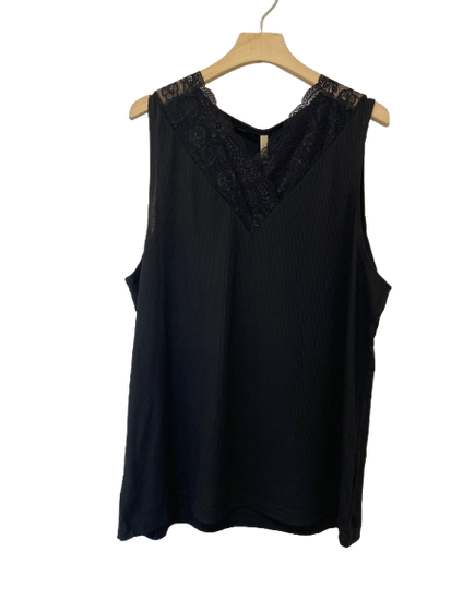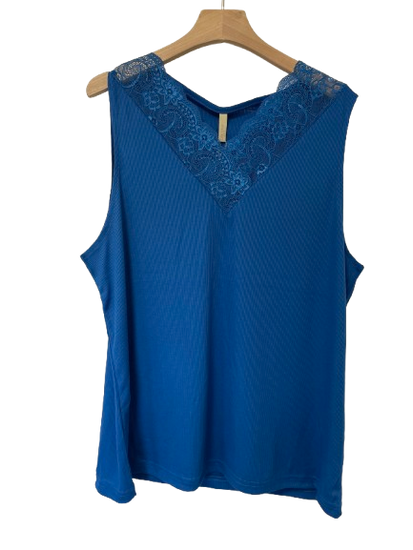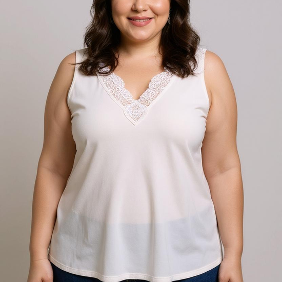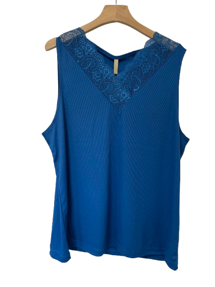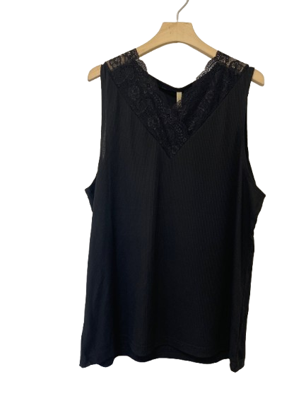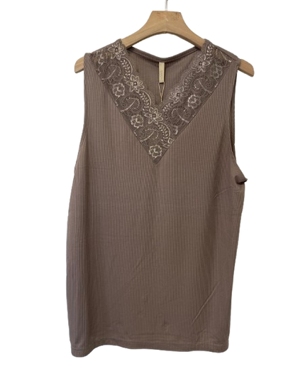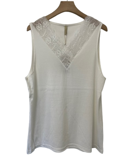 Den delikate V-udskæring med blonder tilføjer en sofistikeret touch, mens den ærmeløse konstruktion gør den ideel til lag-på-lag styling. Toppen er perfekt til både hverdag og festlige lejligheder.
