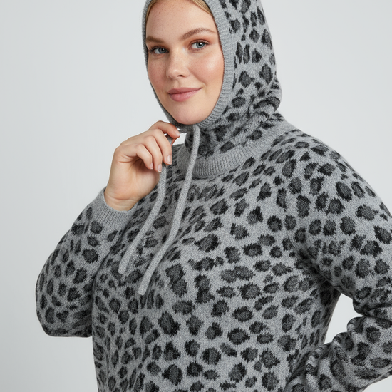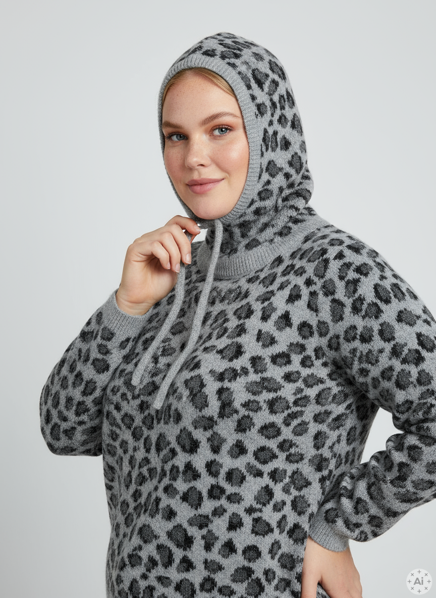 Varm balaclava med trendy leopardmønster
