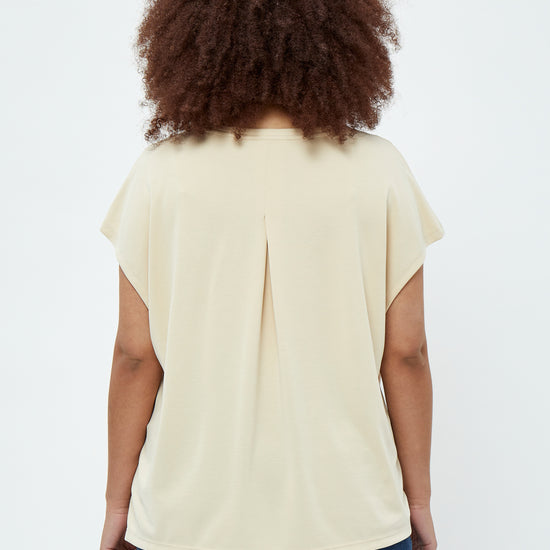 Blusen har en feminin V-halsudskæring, der fremhæver dekolletagen på en elegant måde. De korte ærmer og den løse pasform gør den yderst behagelig at bære, mens de smukke læg ved skuldrene tilføjer et ekstra touch af stil. Denne bluse er en del af vores Plus Size T-shirts kollektion, og den kan nemt styles med både jeans og nederdele fra vores Plus Size Nederdele udvalg for et komplet look.