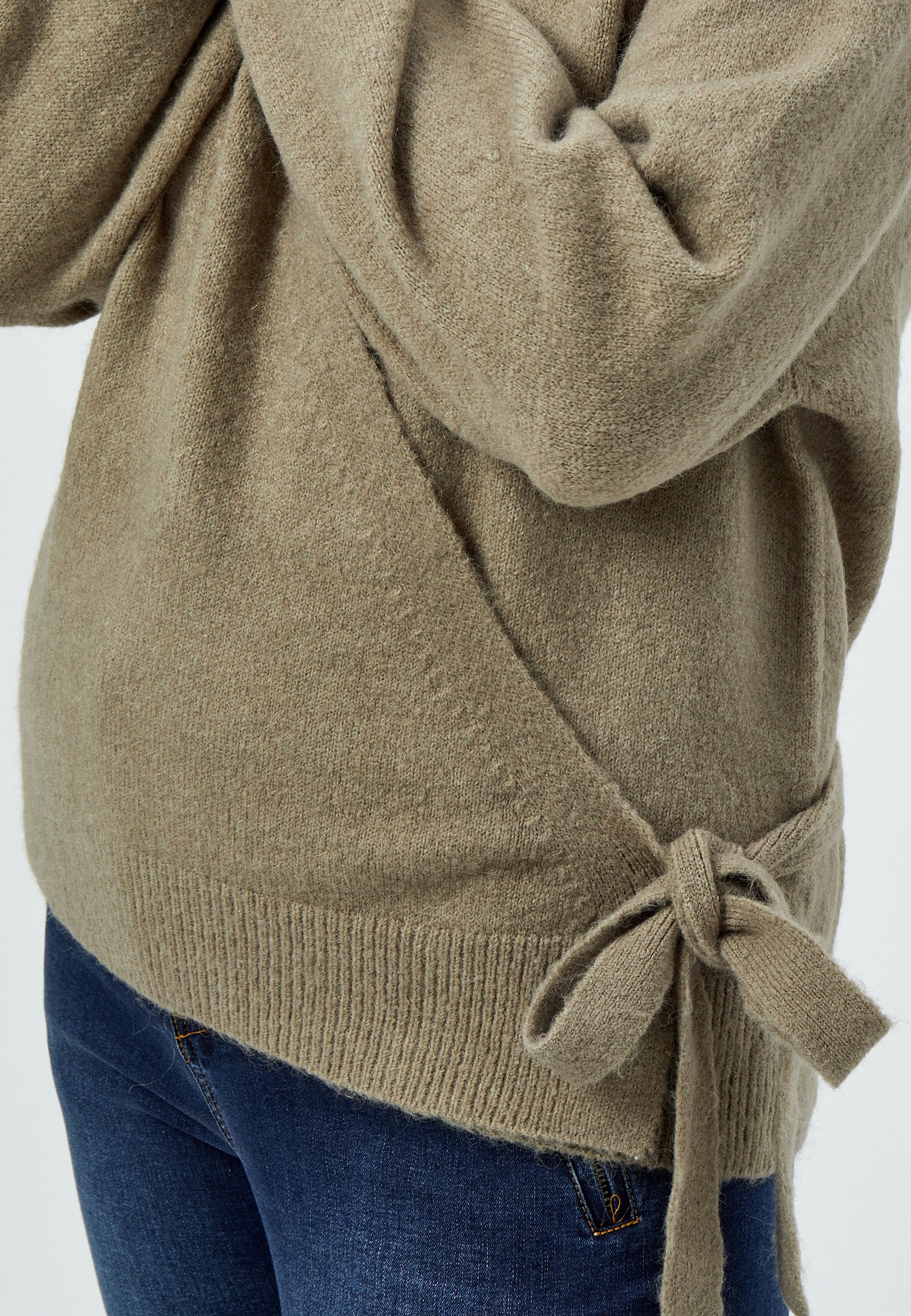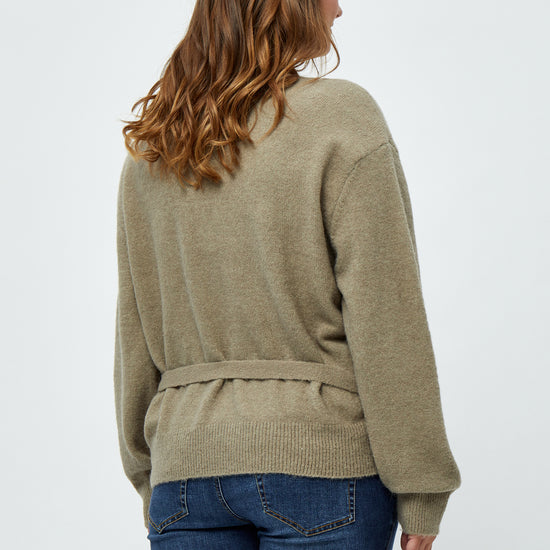 Denne cardigan fra Peppercorn kombinerer stil og komfort perfekt. Med sin afslappede pasform og elegante omslagsdesign er den ideel til både hverdagsbrug og mere formelle anledninger. Den bløde strik er lavet af en blanding af 58% akryl, 29% genanvendt polyester, 10% nylon og 3% elastan, hvilket sikrer en behagelig og holdbar kvalitet.