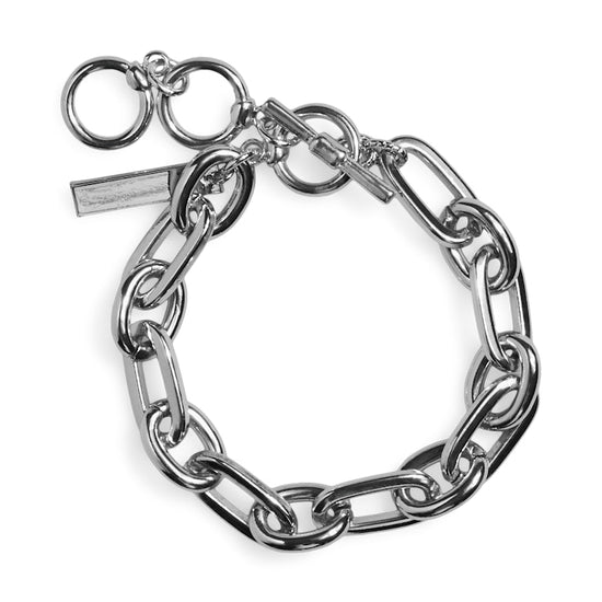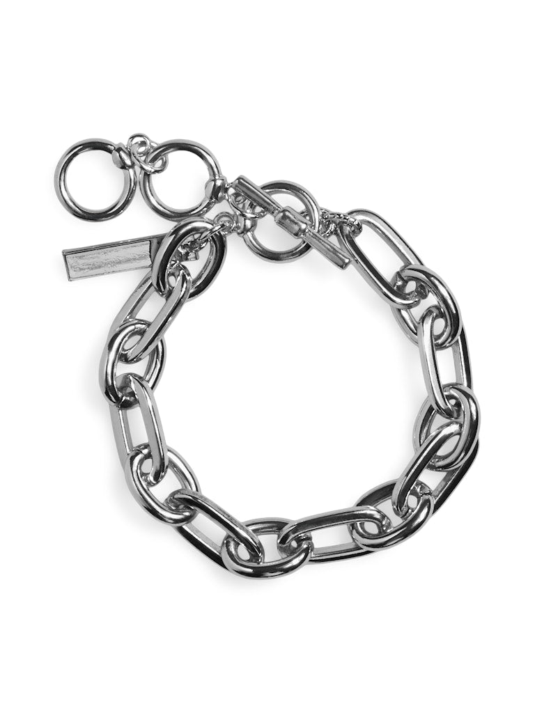 Dette stilrene armbånd fra Pieces kombinerer et enkelt design med høj holdbarhed, takket være materialerne 80% jern og 20% zink. Den sølvfarvede finish med store, ovale kædeled giver et markant og moderne udtryk, der både kan fremstå glat eller med let tekstur. Armbåndet er one-size og måler 19 cm, hvilket gør det let at bære både til strandture, festivaler eller en afslappet hverdag.