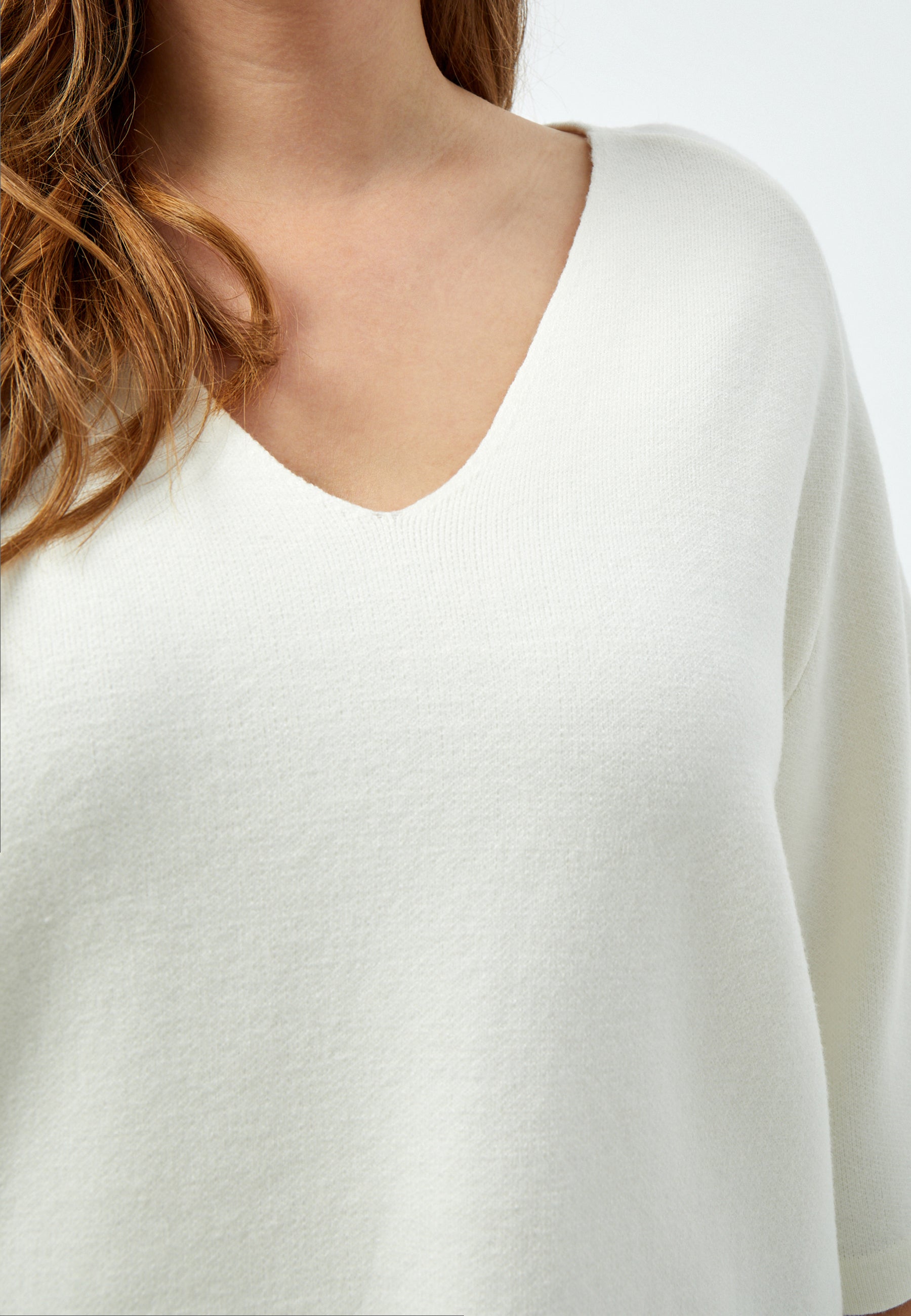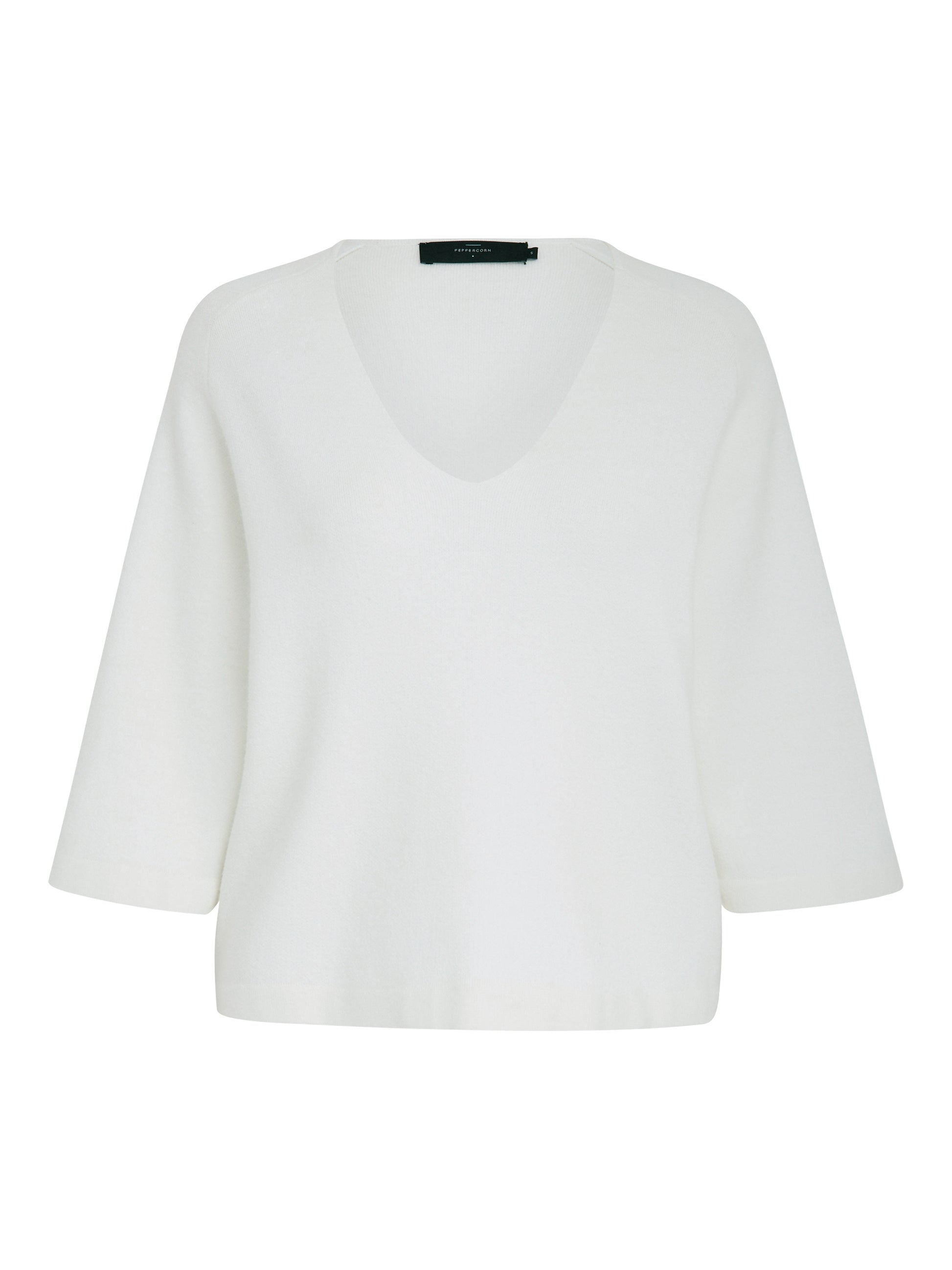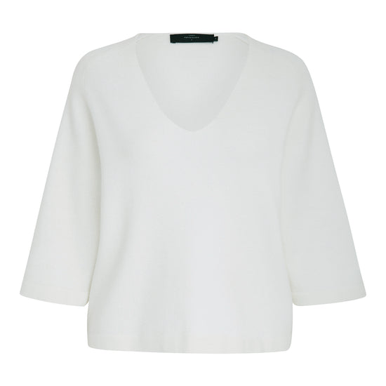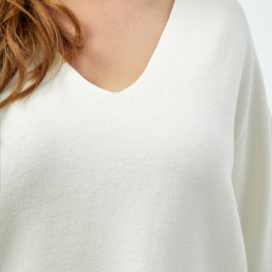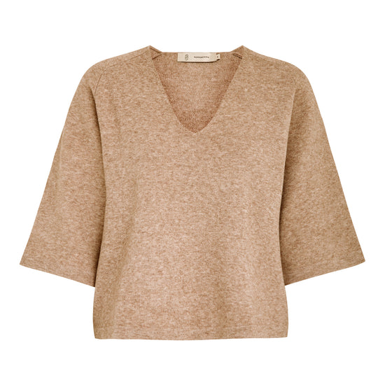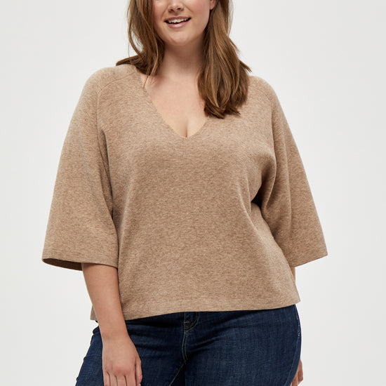 Oplev den perfekte kombination af stil og komfort med Rosalia 3/4 Sleeve Pullover fra Peppercorn. Denne bluse er fremstillet i en luksuriøs blanding af 50% viskose, 28% polyester og 22% nylon, hvilket giver en super blød fornemmelse. De smukke melange farver, i enten "Warm Sand Melange" eller "Cloud Dancer", giver et sofistikeret udtryk, der er let at matche med andre garderobefavoritter. V-halsudskæringen tilføjer et feminint touch, mens de brede 3/4-lange ærmer sikrer et moderne look.