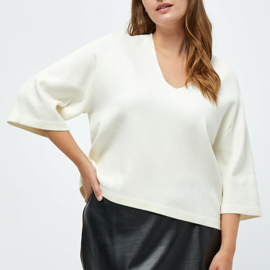 Med en løs/normal pasform er denne pullover designet til at falde flot på kroppen, hvilket gør den ideel til både afslappede og formelle lejligheder. Den tilgængelige størrelse er 50 og 52, hvilket sikrer, at du kan finde den perfekte pasform. Uanset om du vælger at style den med et par jeans eller en nederdel, vil Rosalia 3/4 Sleeve Pullover hurtigt blive en favorit i din garderobe. Se flere flotte strikbluser og bluser i plus size for at fuldende din stil.